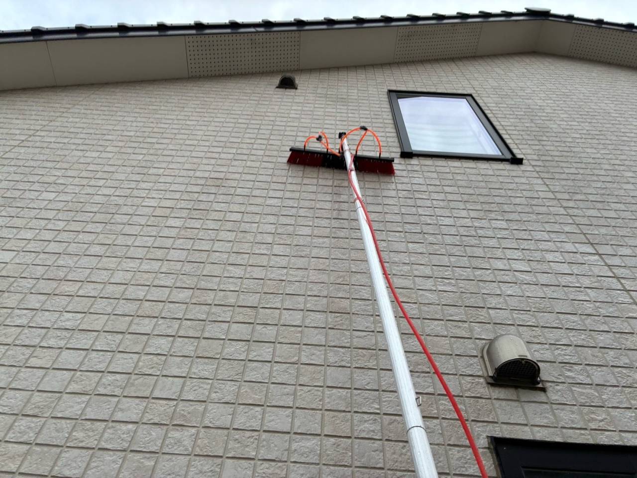 高圧洗浄やブラシによる擦り洗いではなく、薬品を塗布して流すだけの汚れ落としが可能です。(※一部洗い落とせない外壁材などもございます。)