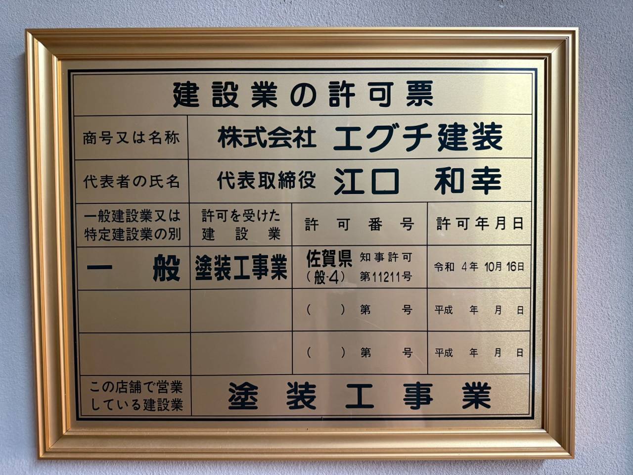 さらに、会社の方も建設業の許可証 (佐賀県知事許可 第11211号)を取得しておりますので、法的にも公的にも認められた会社でありこれを取得していない塗装業者様とは信用力が違います。