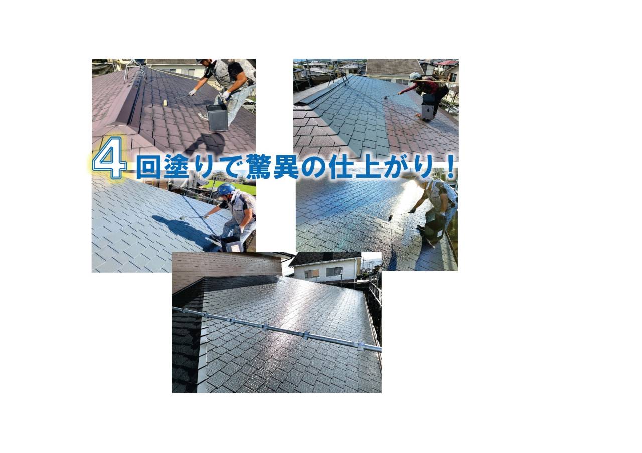 メーカー仕様書のみに頼らず必要に応じて4回塗り(下塗り2回+上塗り2回=計4回塗り)や5回塗り(下塗り2回+上塗り3回=計5回塗り)、極端に劣化が進行した素地を塗装する場合には稀に6回塗り(下塗り2回+下地調整材塗り1回+上塗り3回=計6回塗り)をご提案差し上げることもございます。