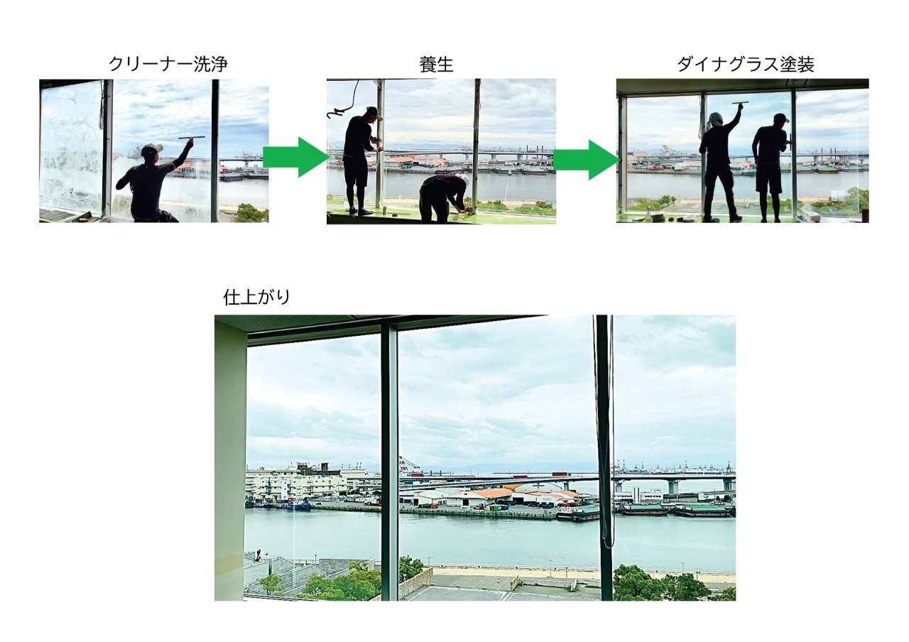 ガラス用遮熱塗料 ダイナグラスの塗装工程