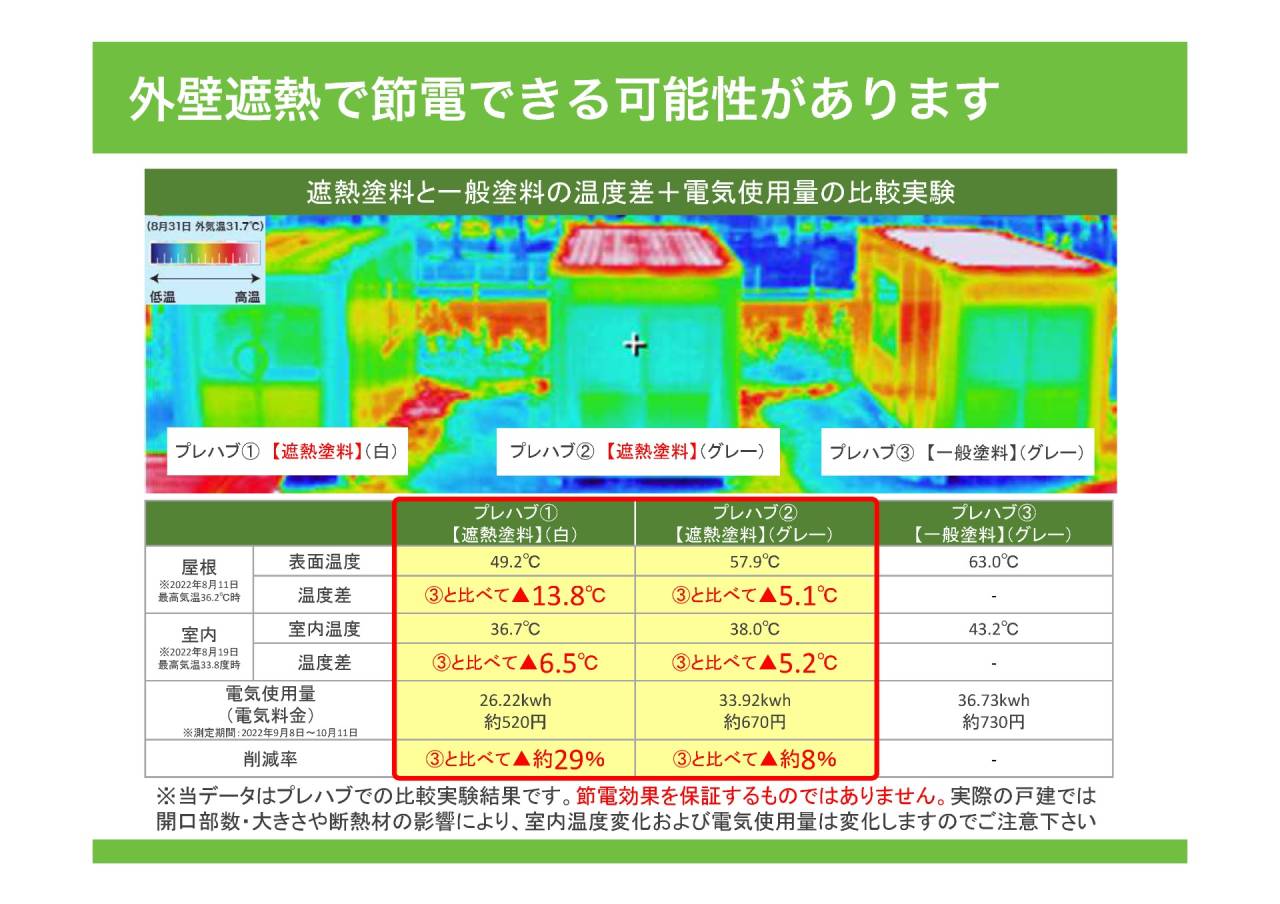 ① 断熱性能・遮熱性能が他社の断熱塗料より優れております。(エビデンスあり)