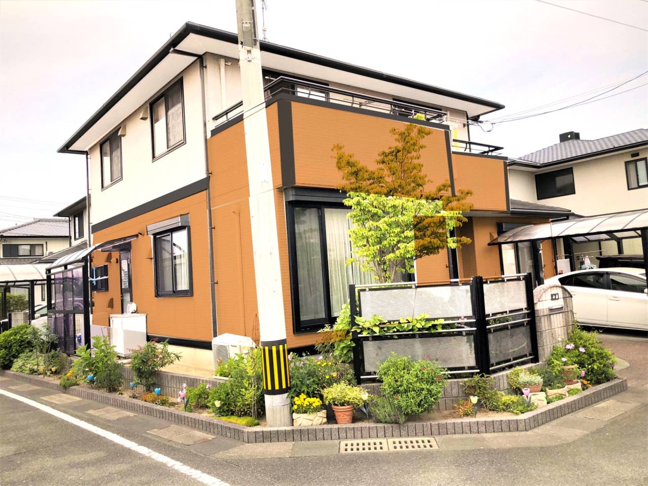 外壁 : 2階=ワームクレイ(くすんだオレンジ系)、1階=ブロークンホワイト(薄いアイボリー)