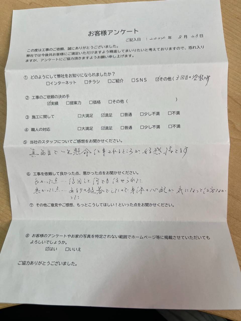 当社は2004年創業ですが、その2004年に私(代表者)がご縁を頂いて塗装工事をさせていただき、こちらの御宅のご主人様と私の実父が取引関係がありまして仲良くなりました。