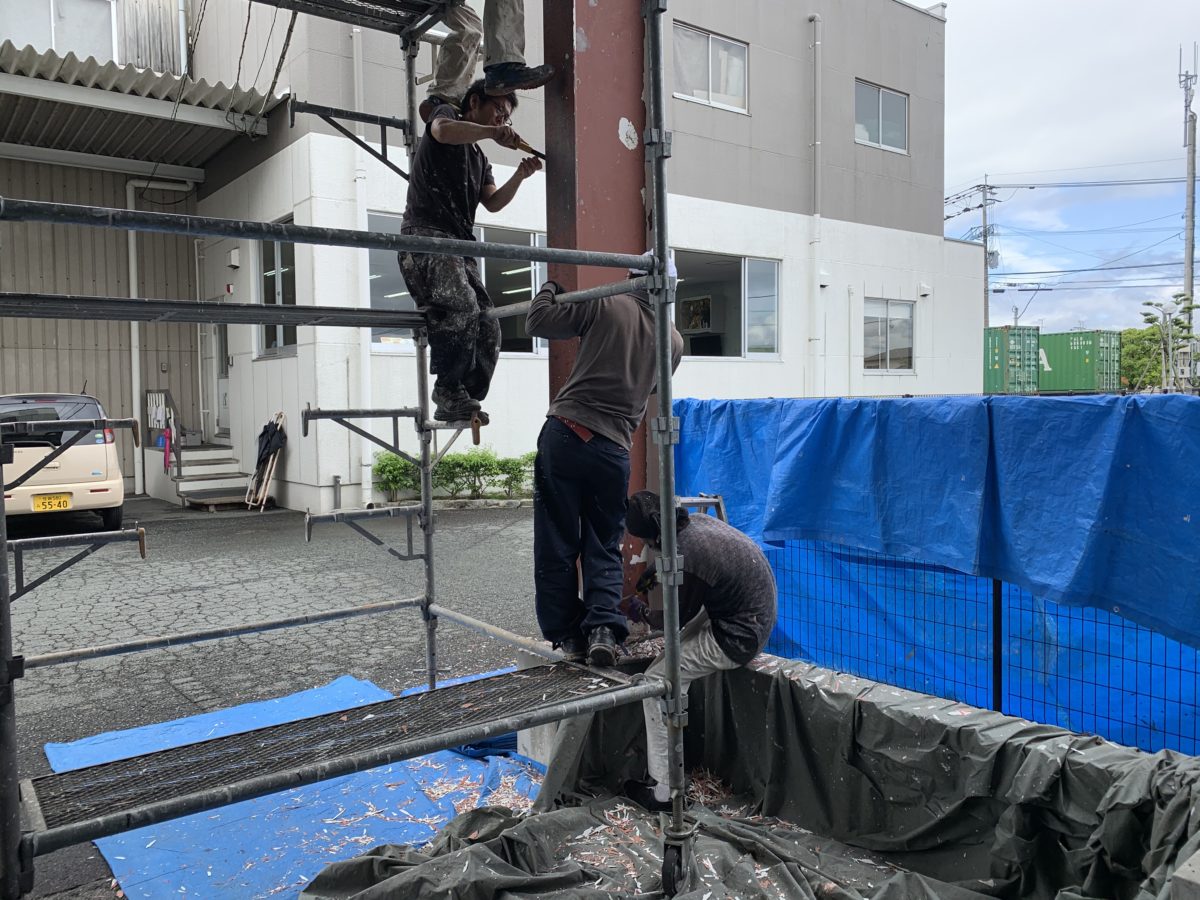 ちょうどその降らない箇所だったもので鉄骨柱の塗装をさせていただきました。