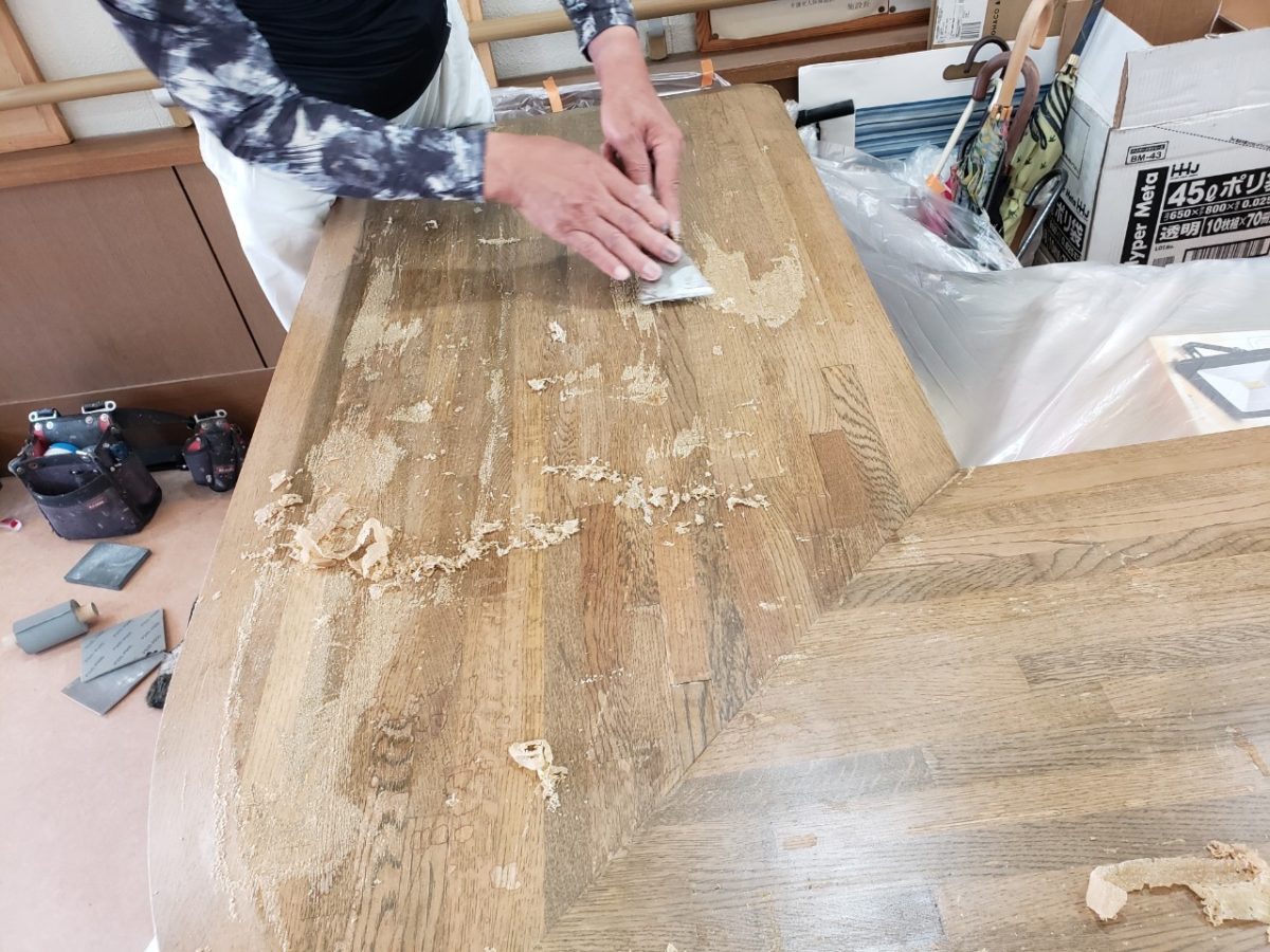 カウンターは既存の塗膜を全て完全除去します。