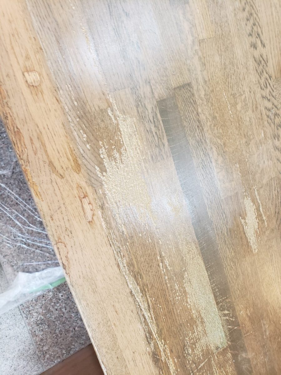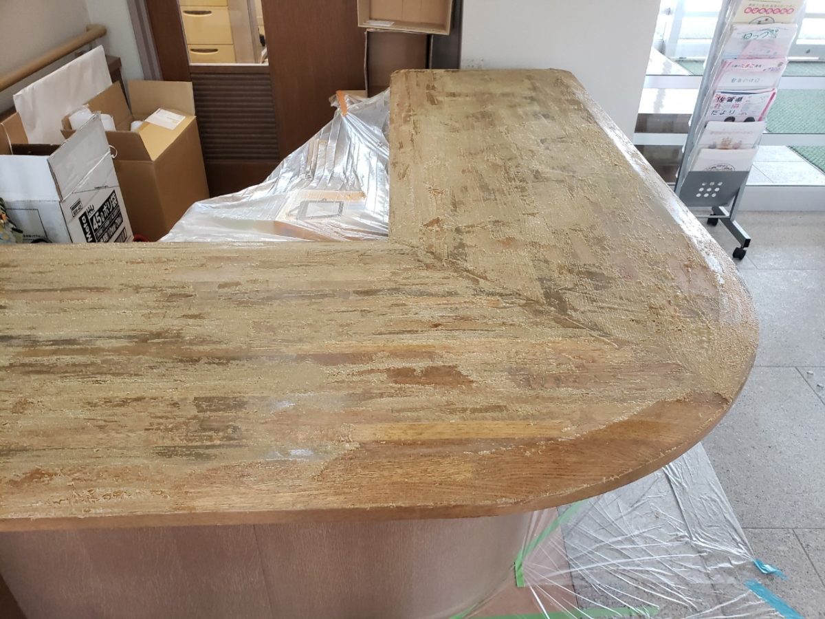 カウンターは一見悪い箇所が無さそうに見えますが、所々塗膜の剥がれや浮きがあり見た目が悪くなってます。