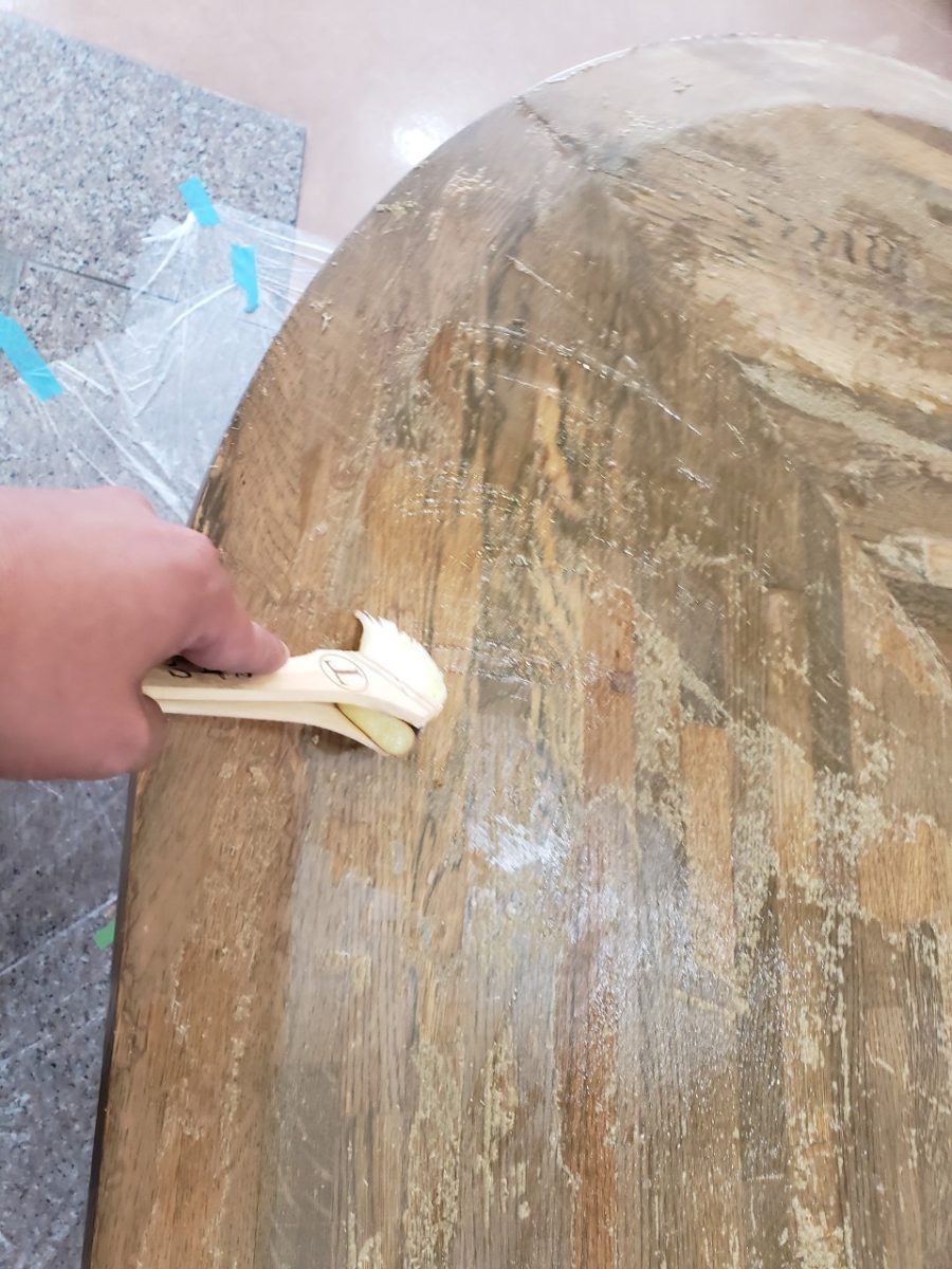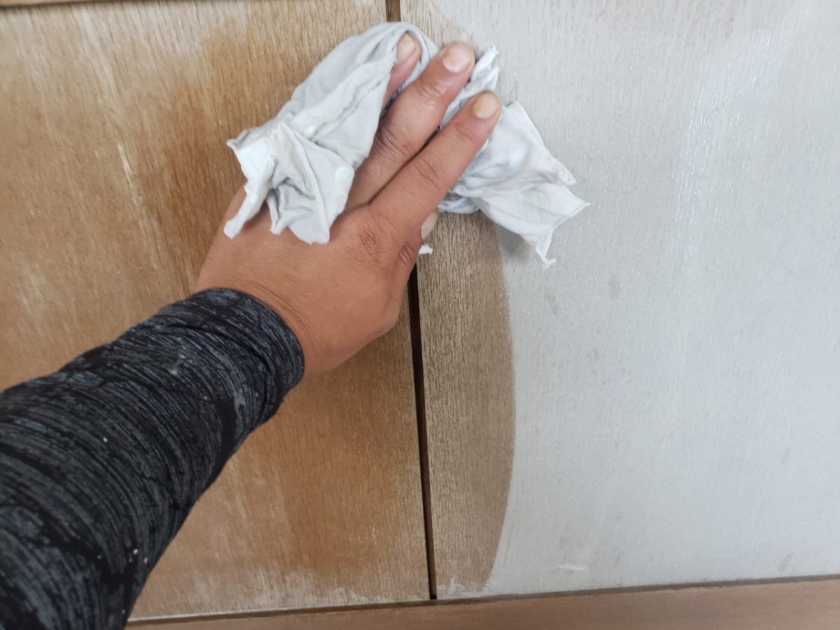 こちらも下地処理からやっていきますが、まずは表面の拭き取り。