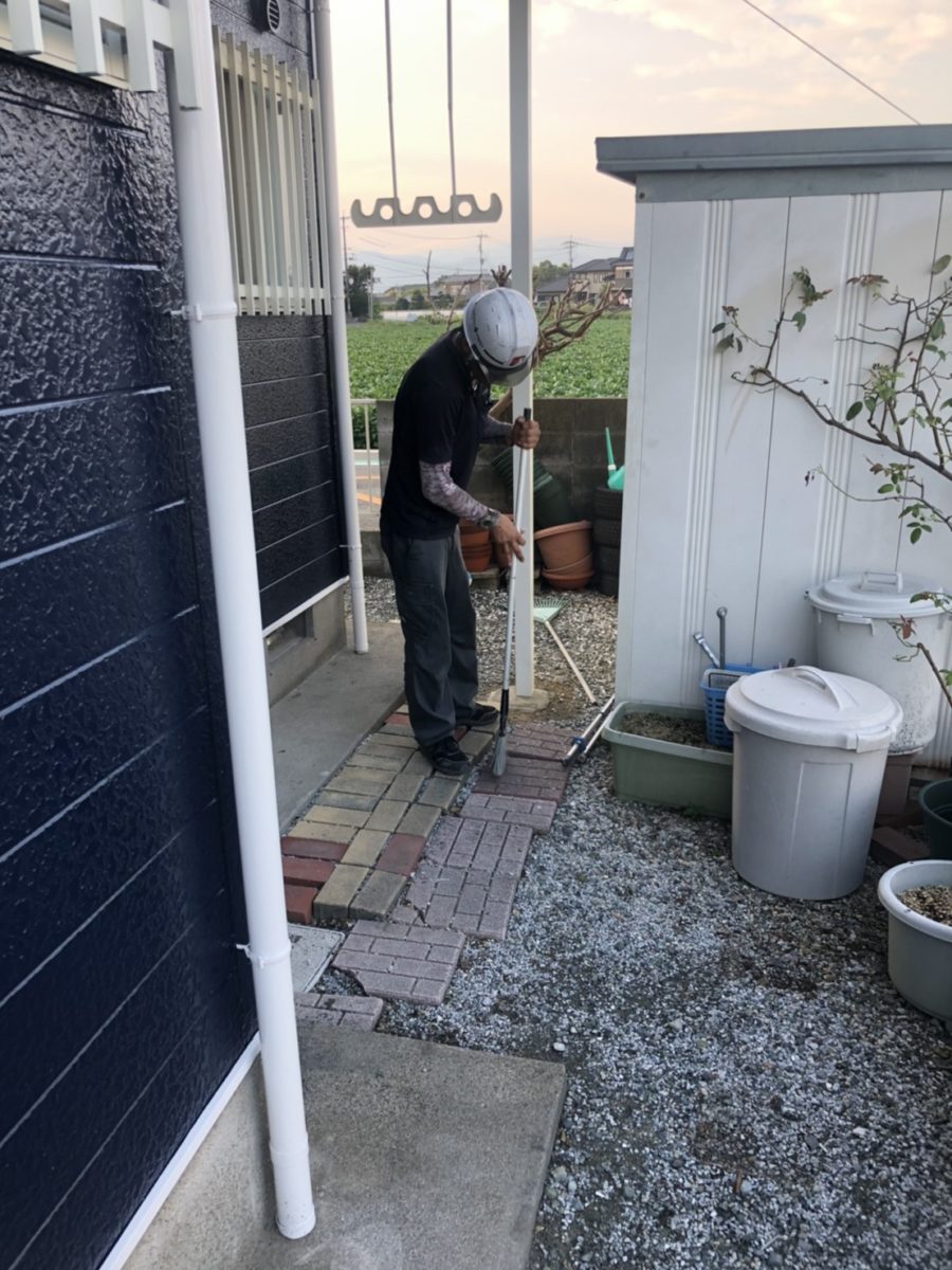 足場解体後にゴミ拾い、清掃もしていきます。