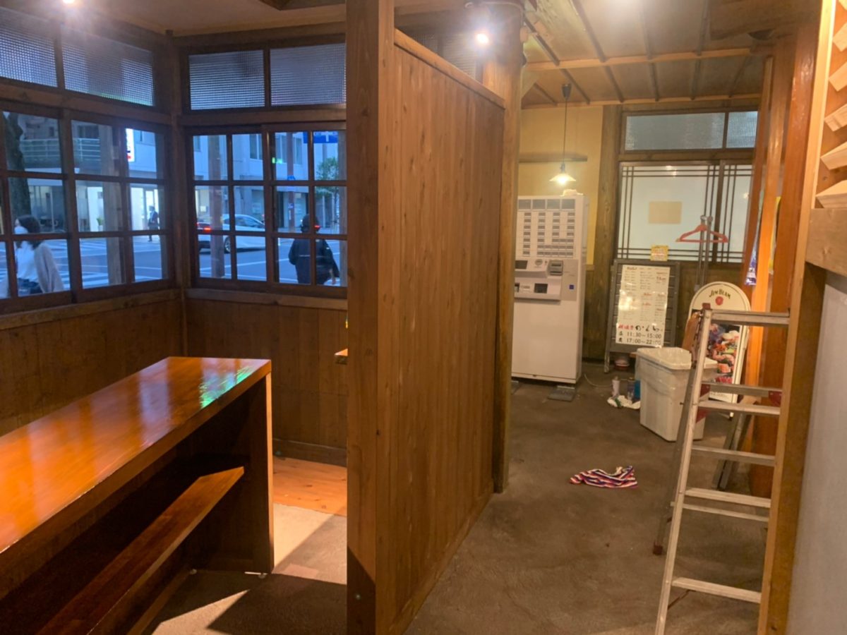 本日は急ぎの工事で佐賀市中央大通りにある居酒屋さんを改装して一部唐揚げ屋さんにするご予定の塗装工事です。