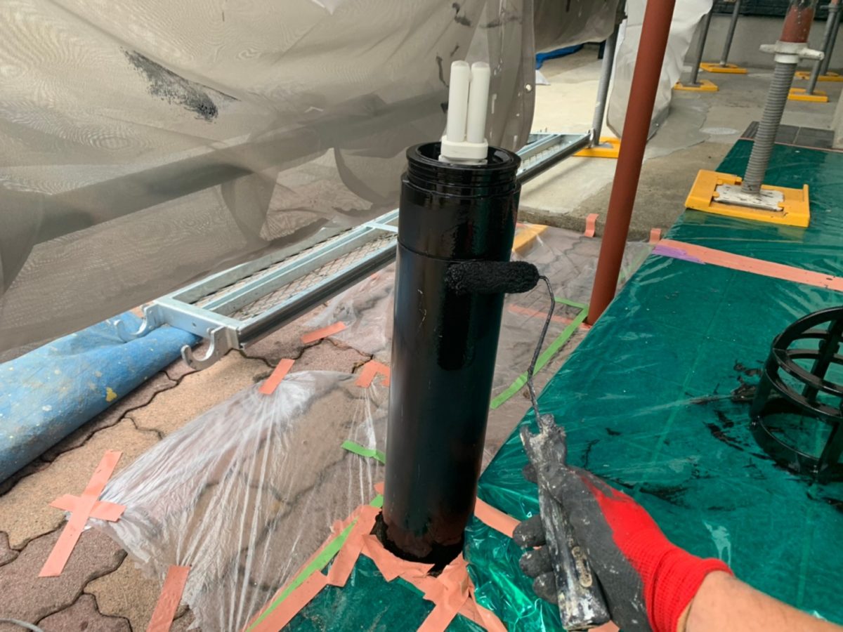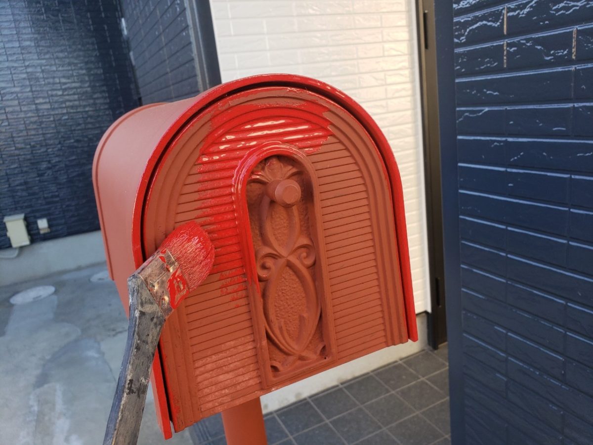 最後にポスト、電燈、塀の中塗り塗装状況です。