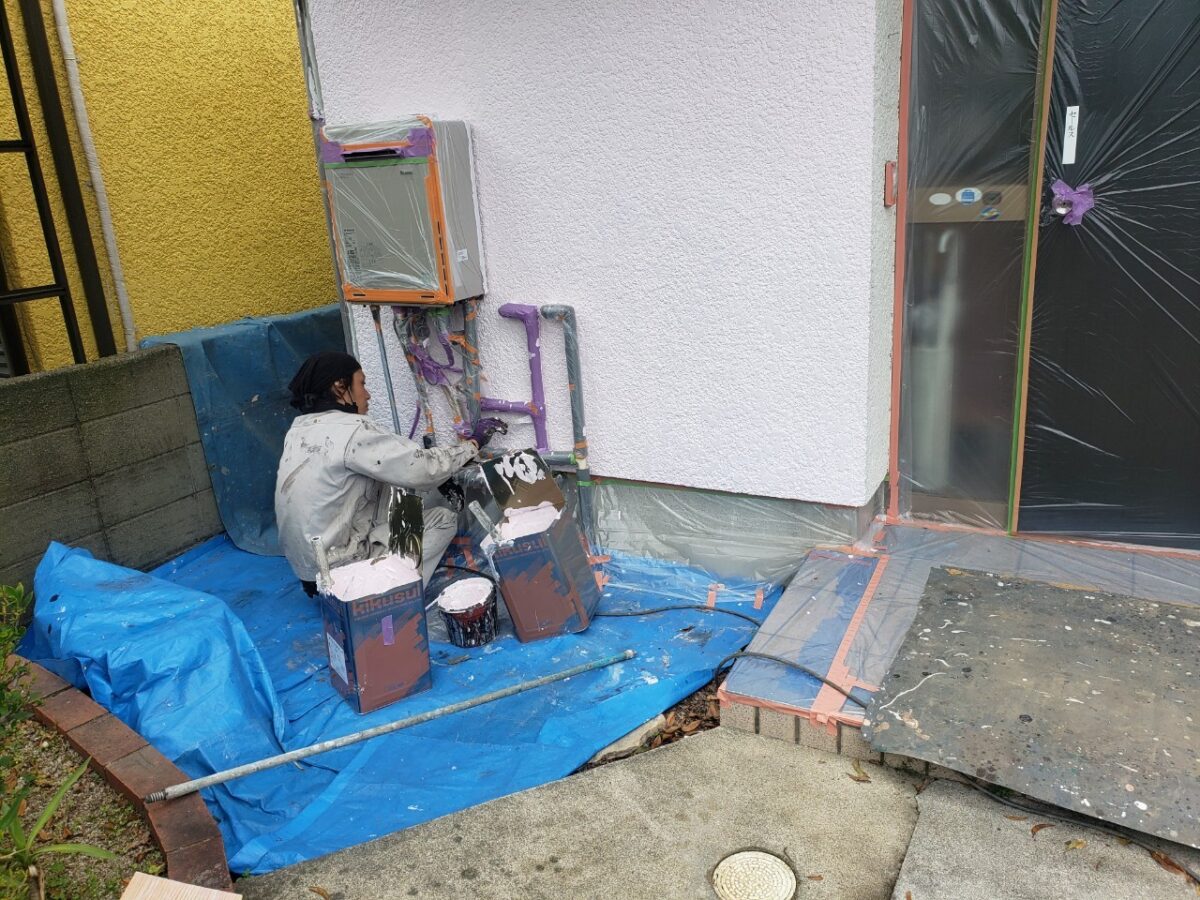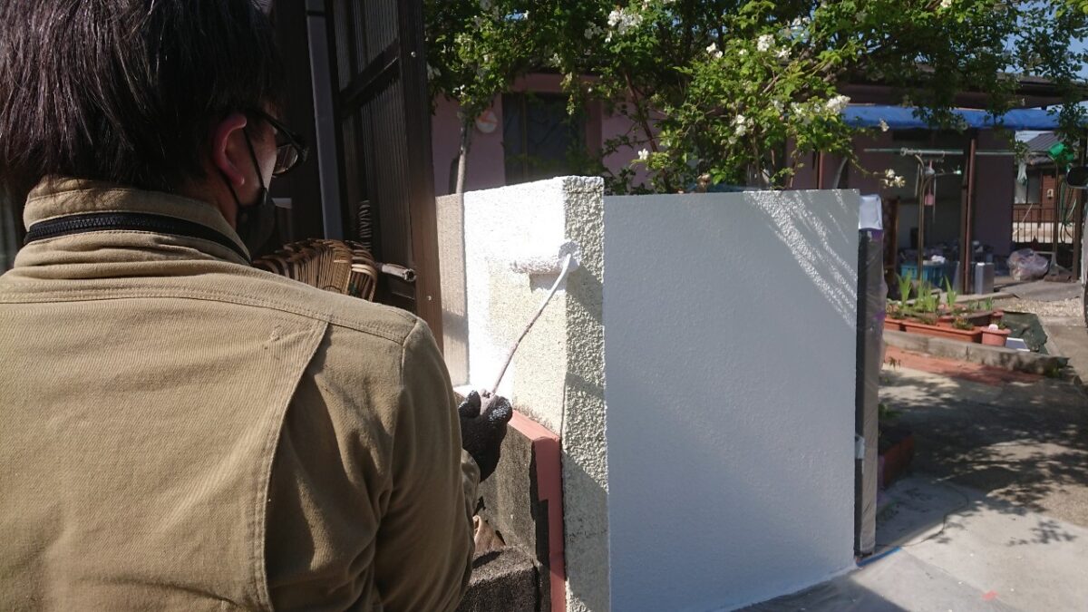 翌日、養生してから下塗り工程へ