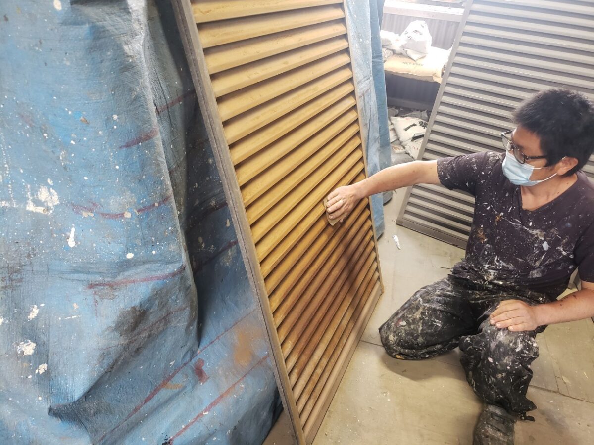 この日は作業場へと戻り、持ち帰った雨戸の作業をやります。