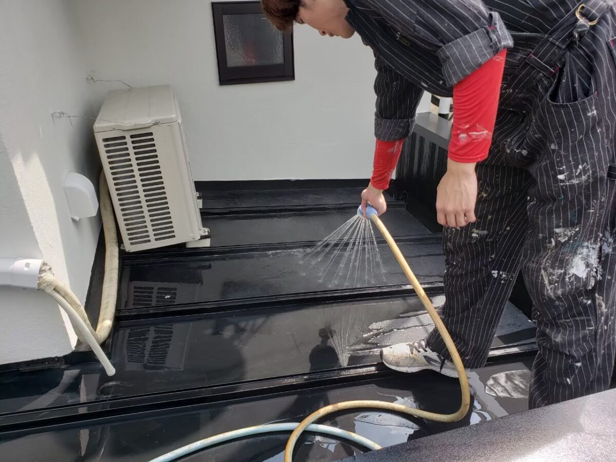 水の浸透を防いでコケやカビを生えにくくするのが目的です。