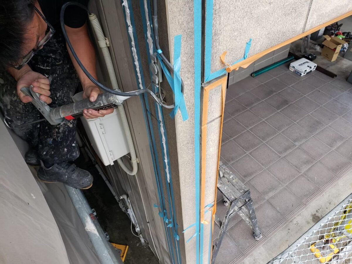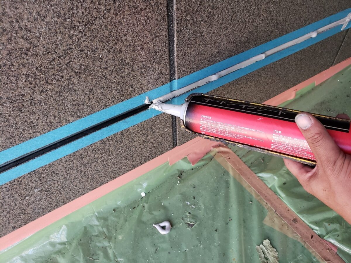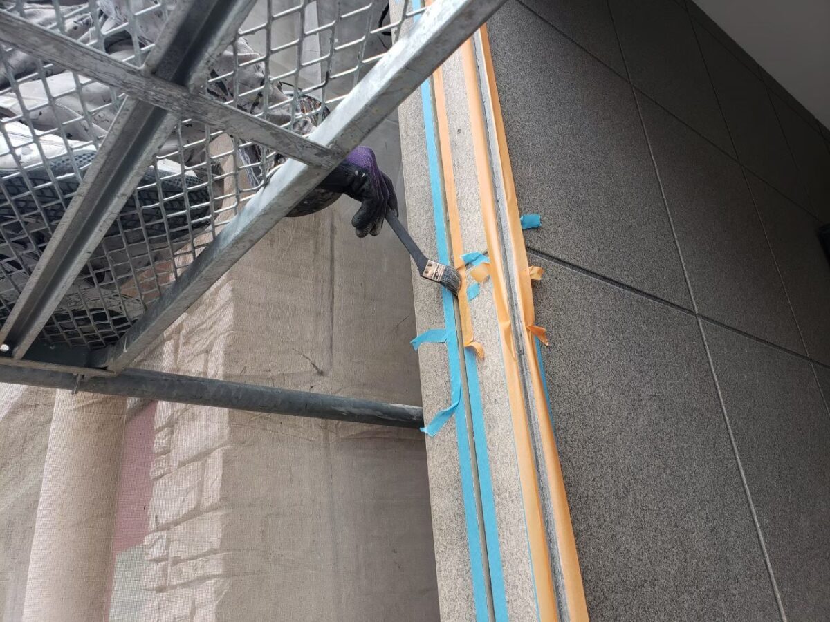 その後、テープを貼り、シーリングプライマーを塗っていきます。