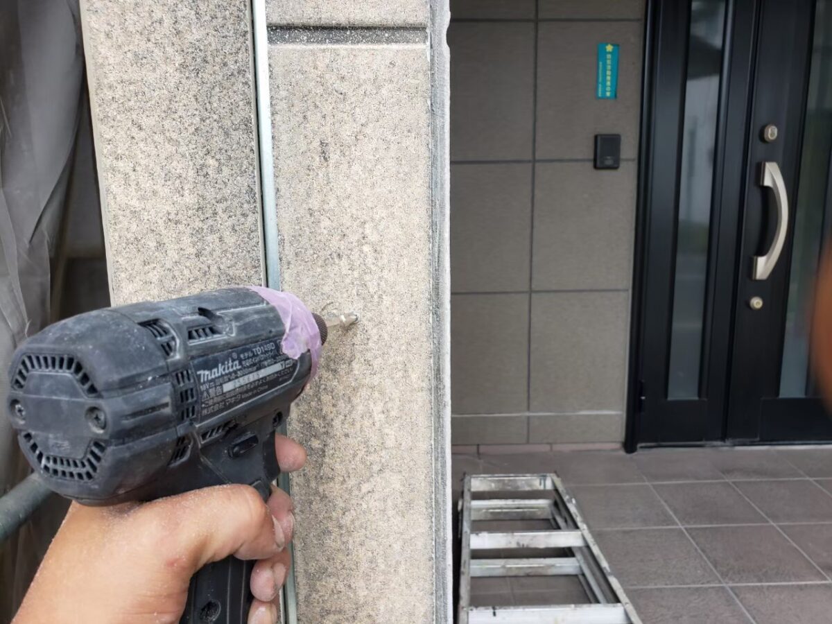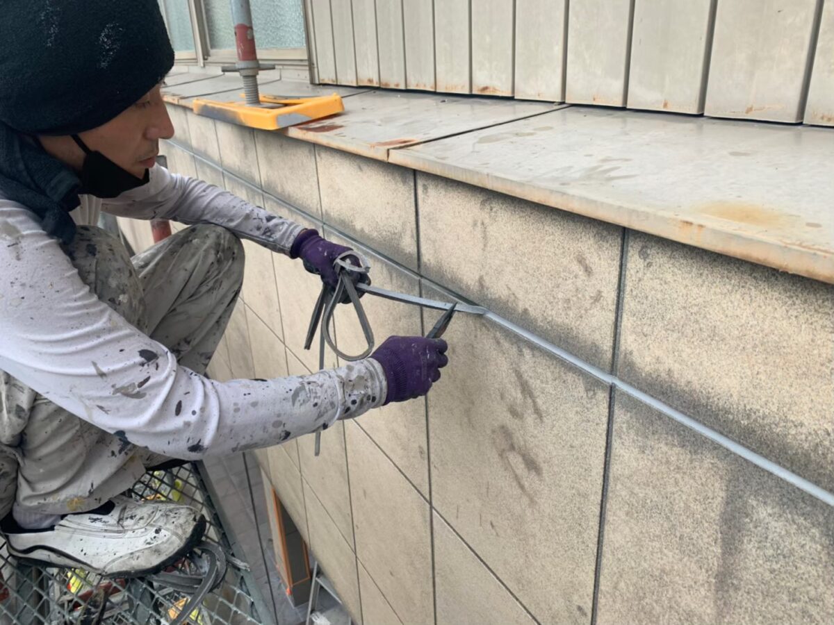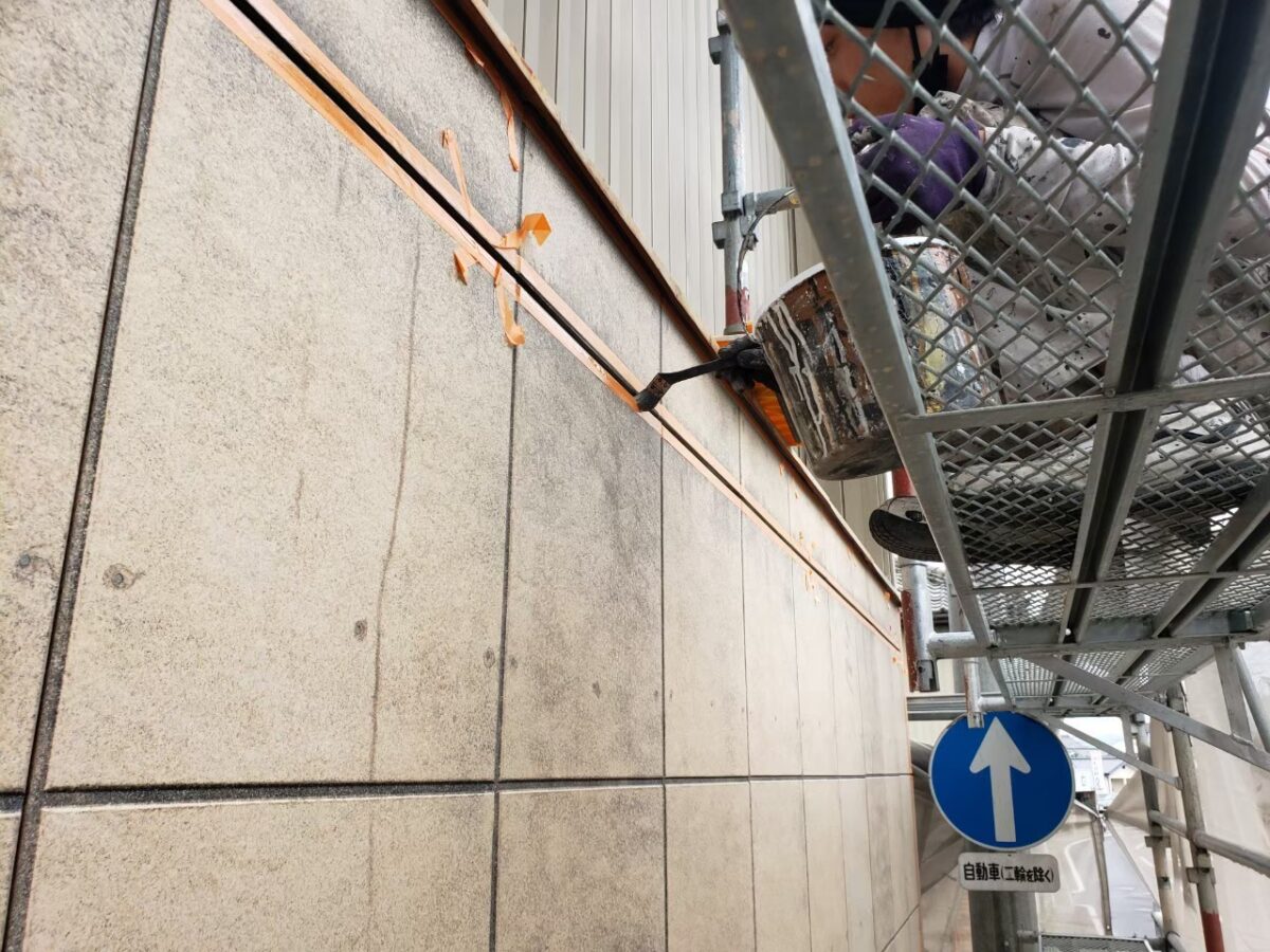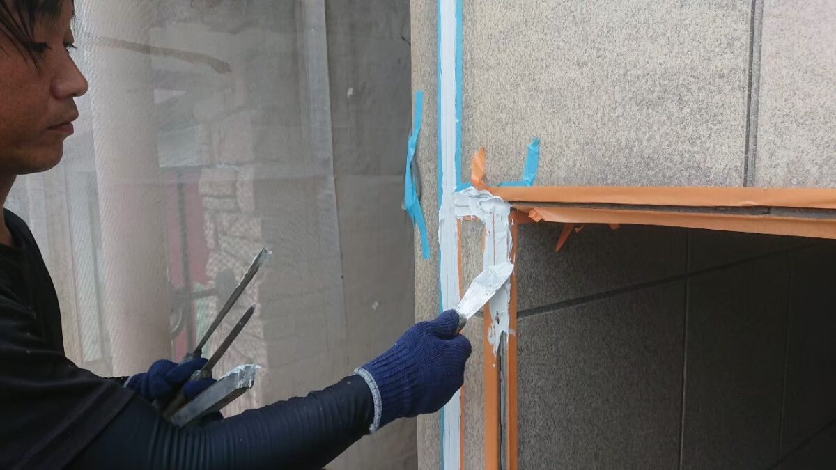 その後、テープを貼り、シーリングプライマーを塗っていきます。