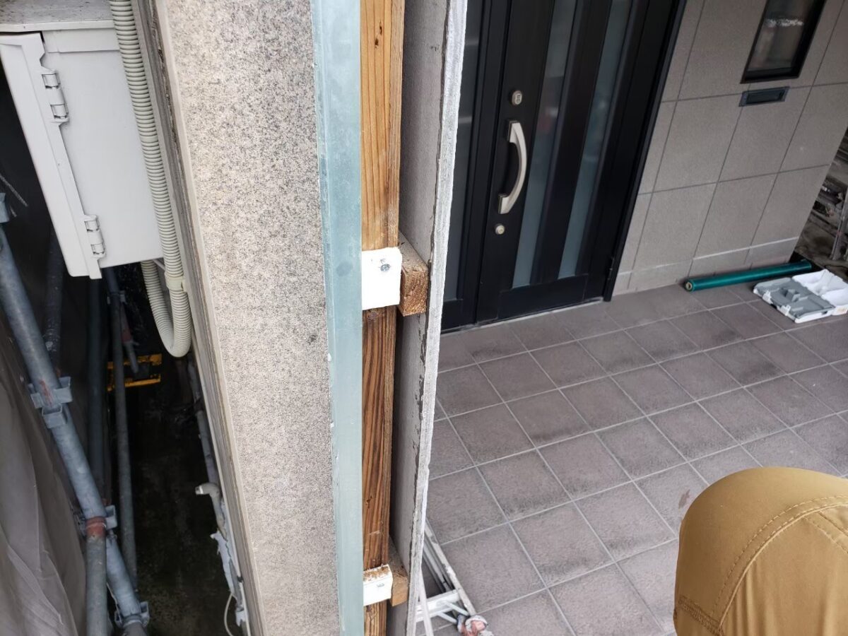 ちなみに撤去時に外壁の一部がズレて貼ってあったので、一度外壁材を外します。