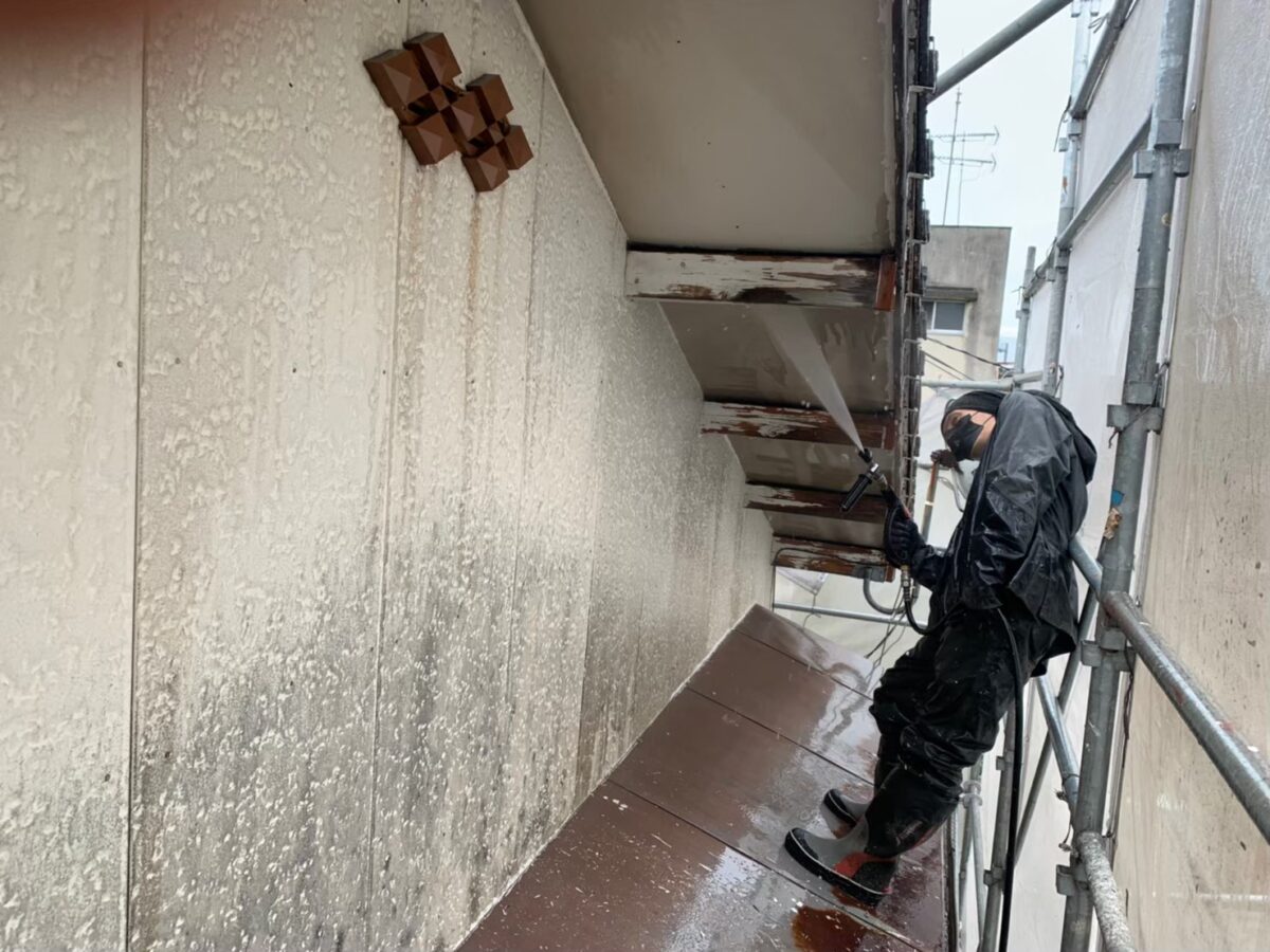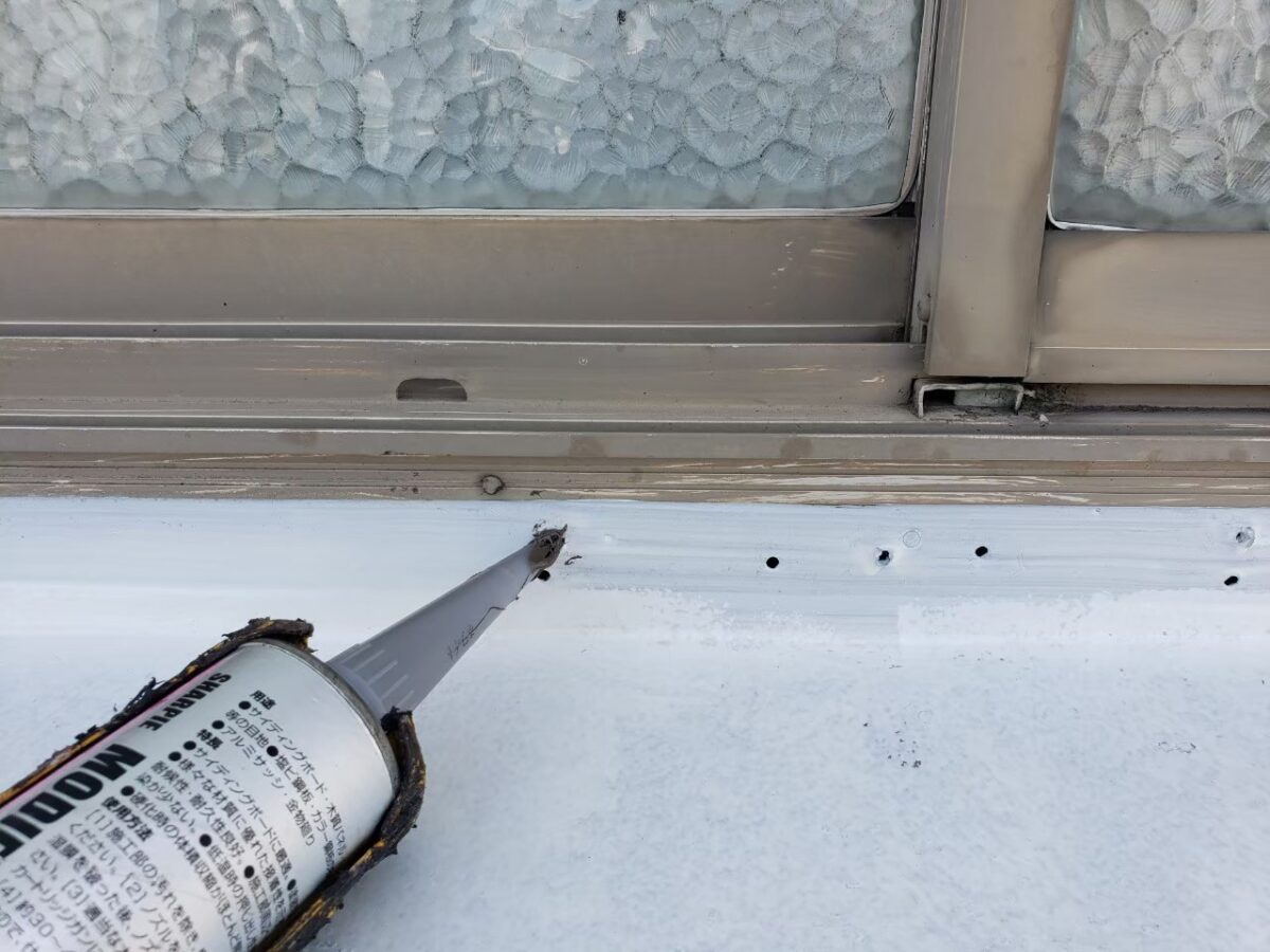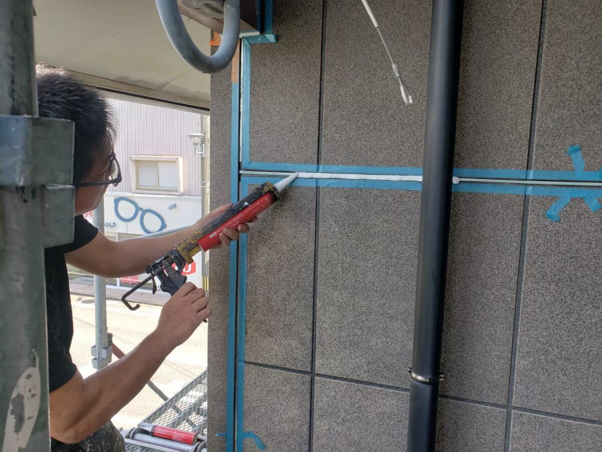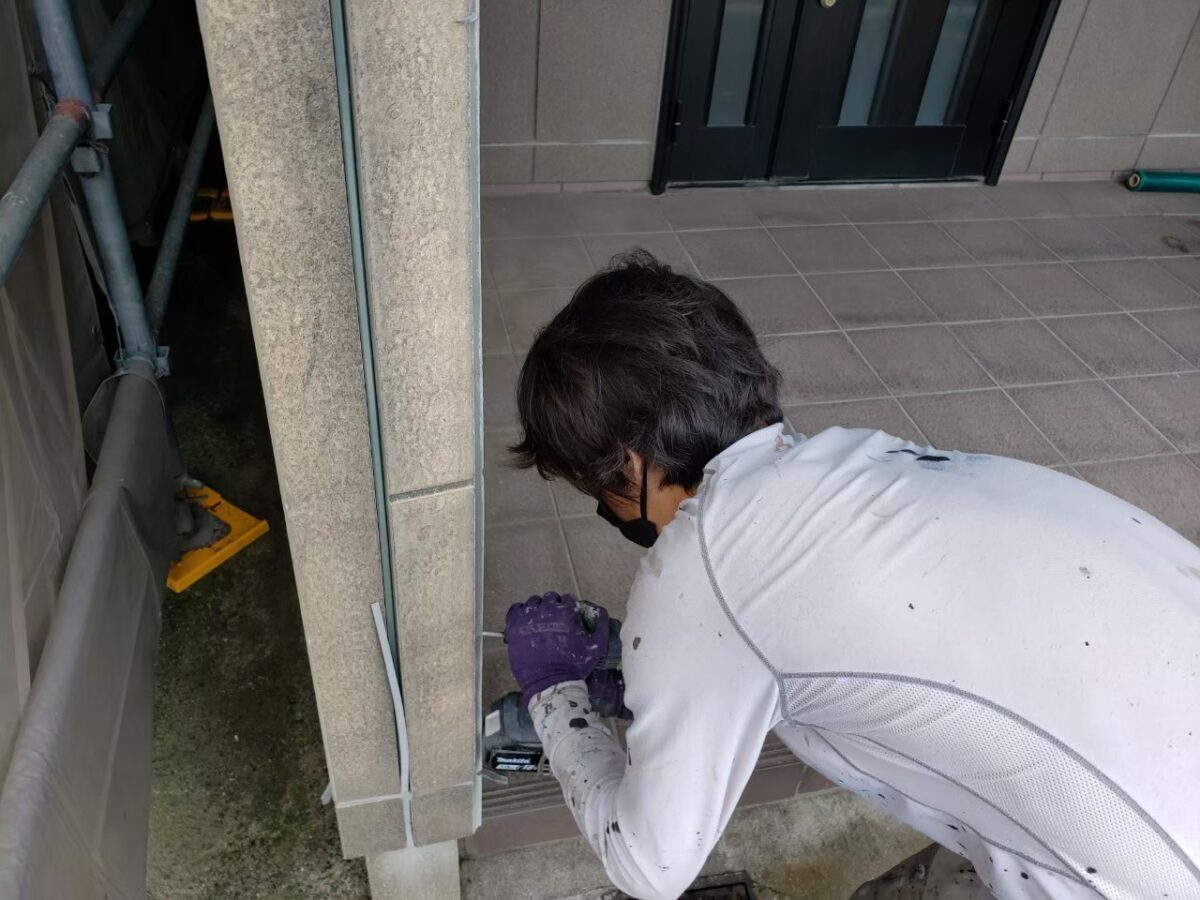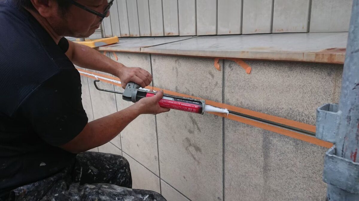 まずは高圧洗浄をやる前に水漏れの恐れがある箇所の防水処理をやっていきます。