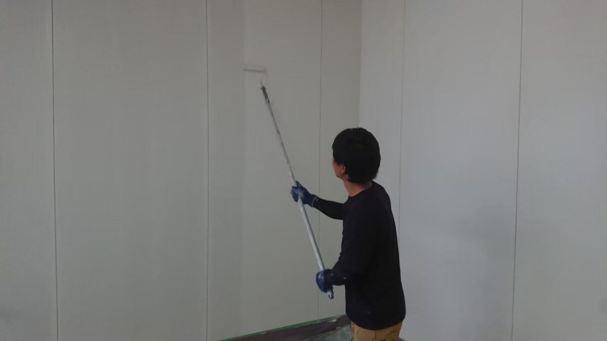 その後、駐車場内側壁の上塗りをやっていきます。