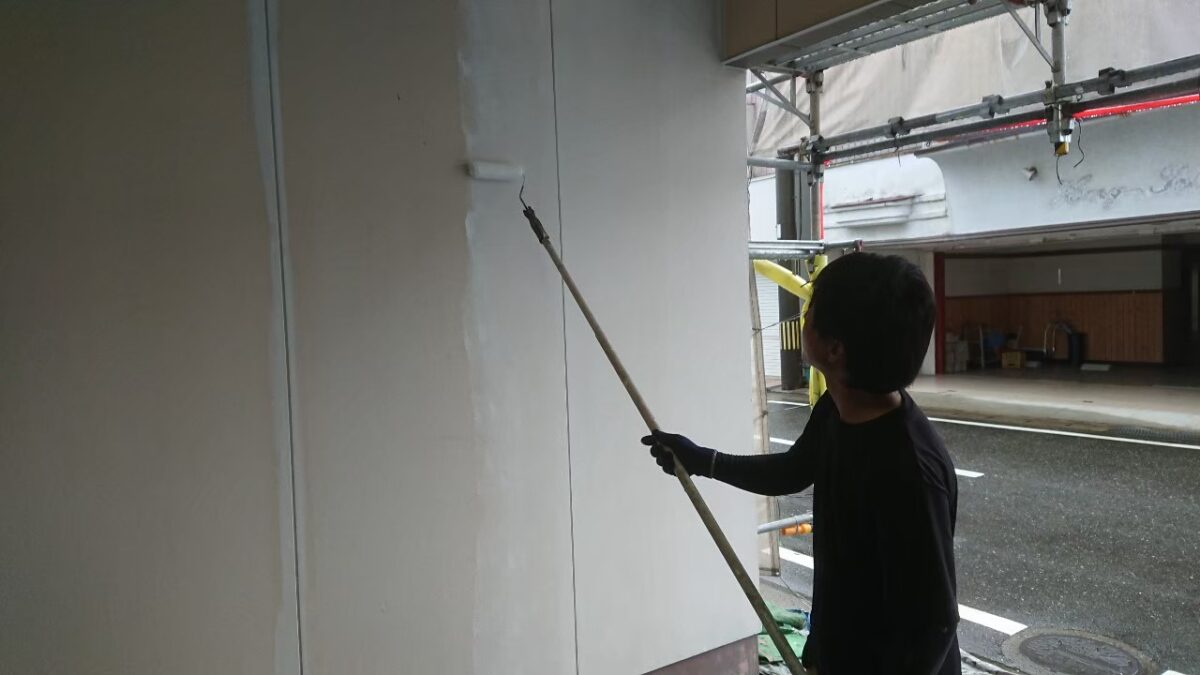 まずは駐車場の内側壁の下塗り状況です。