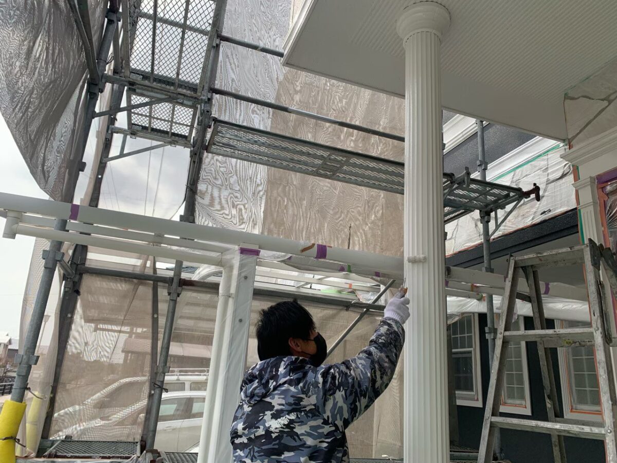 飾り柱、鼻隠し、樋、窓枠、胴差し部、丸柱等、附帯部の塗装箇所がいっぱいです!