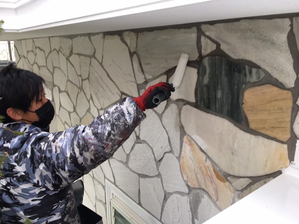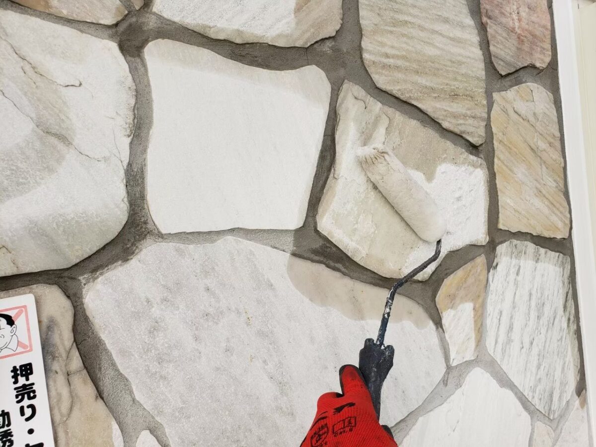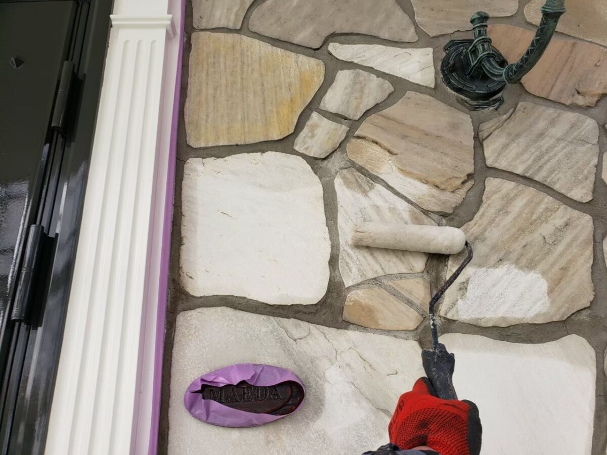 石調タイル面の浸透撥水剤塗装状況です。