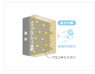 空気中の水分と反応(加水分解)し、シラノールになり表層に配列される。