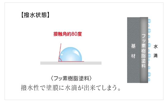 表層が変成した その塗膜は付着した汚染物質をハイドロクリーニング効果により雨水が流し落とします。また、静電気の帯電も少なくチリやホコリを寄せ付けず建物の美しさを長期にわたり保ち続けます。