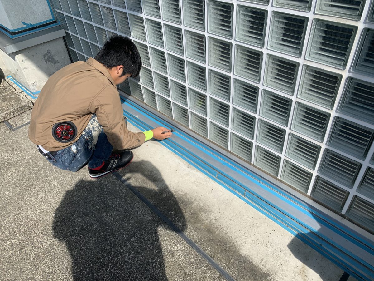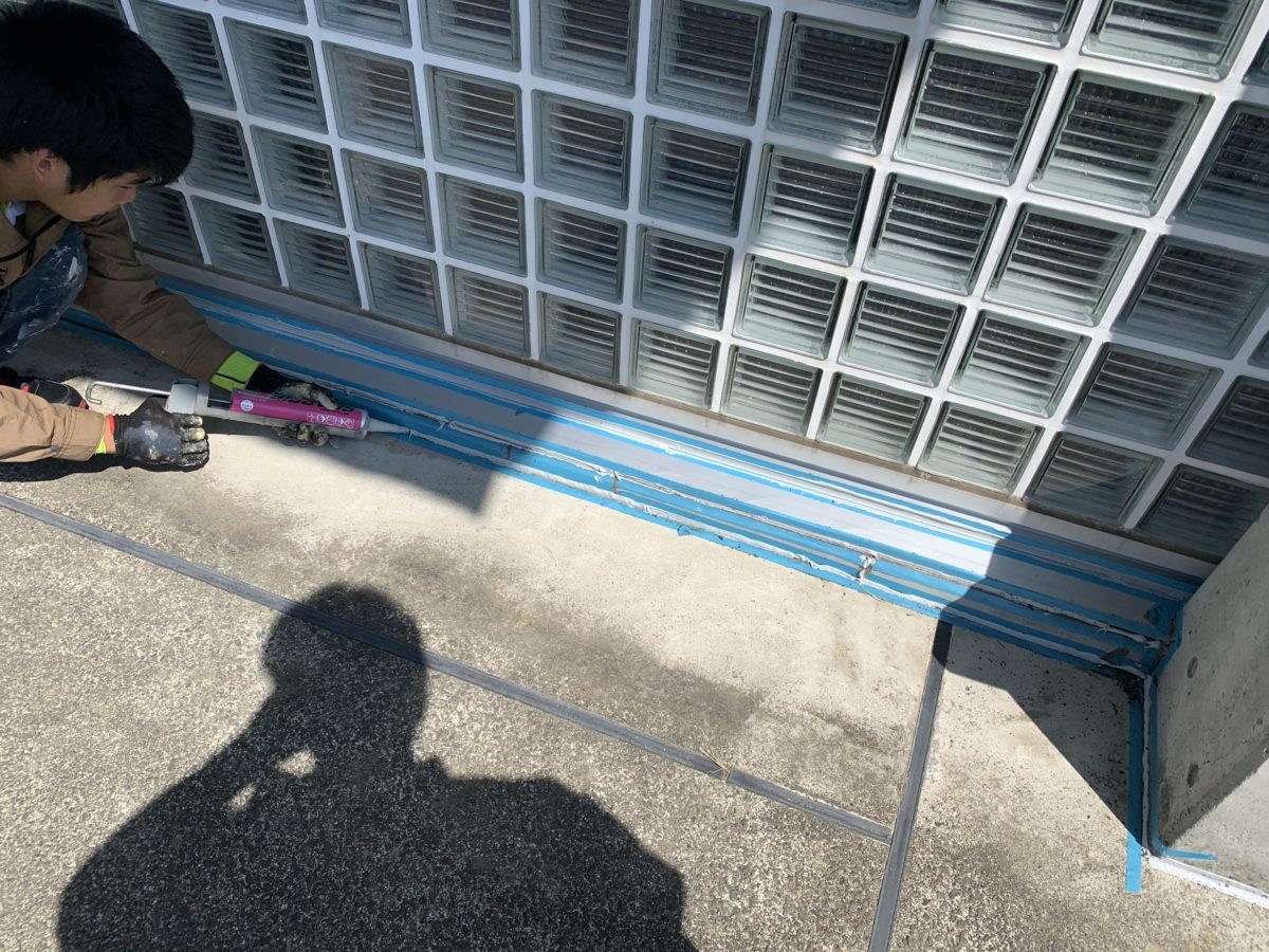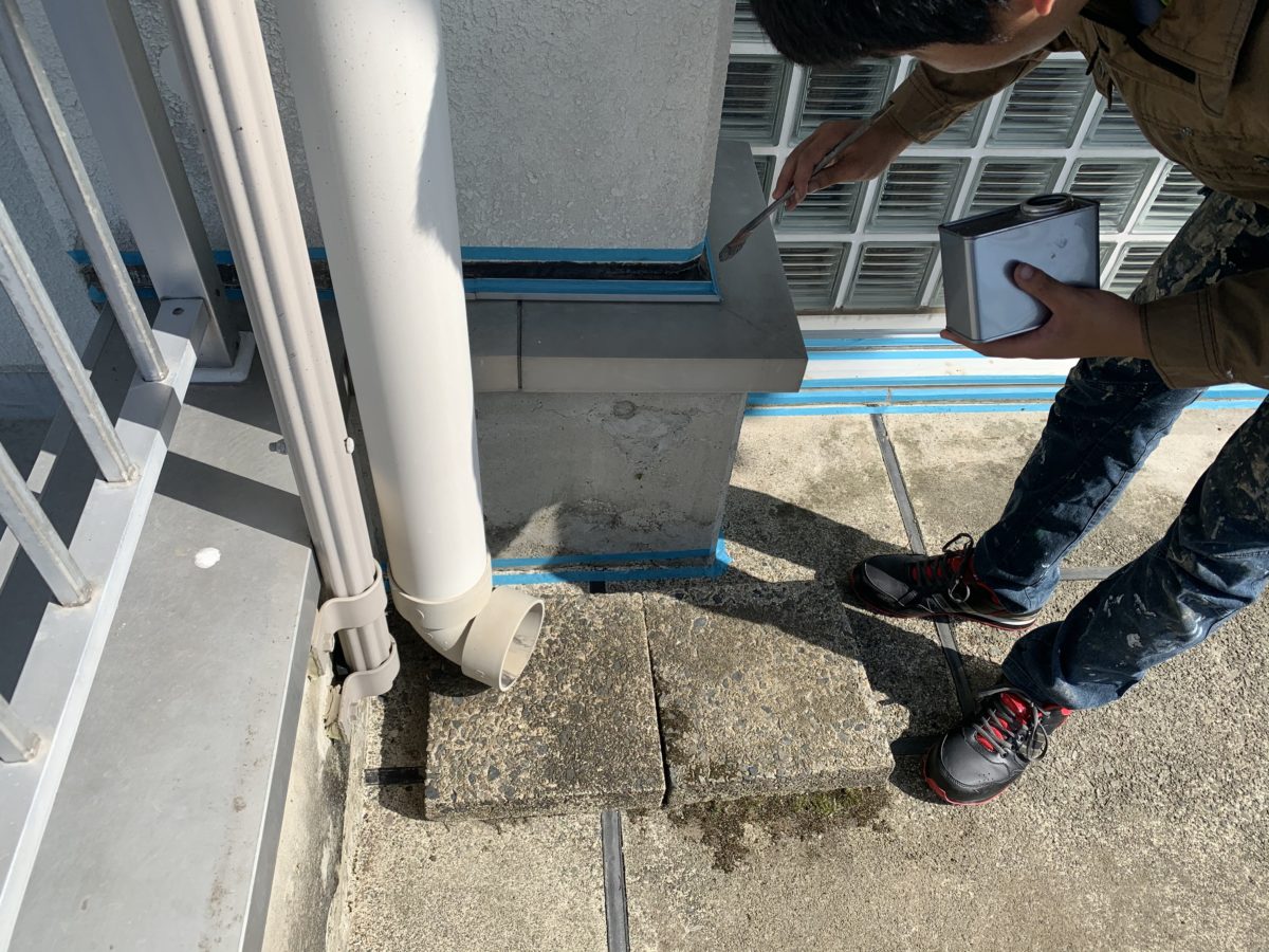 事前調査ではこれといって決定打となるような穴や隙間といったものはなかったので、特定範囲内で考えられる角や小さなひび割れ部を全てシーリング処理してくださいとのご依頼でした。