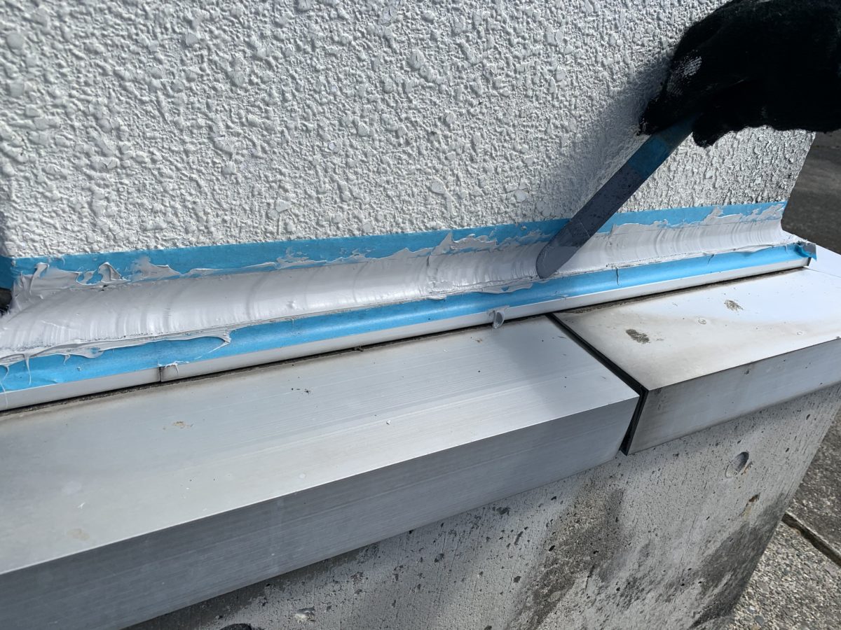 打たれたシーリングを専用ヘラにて押さえていきます。