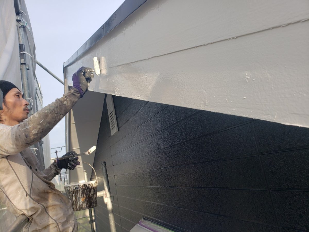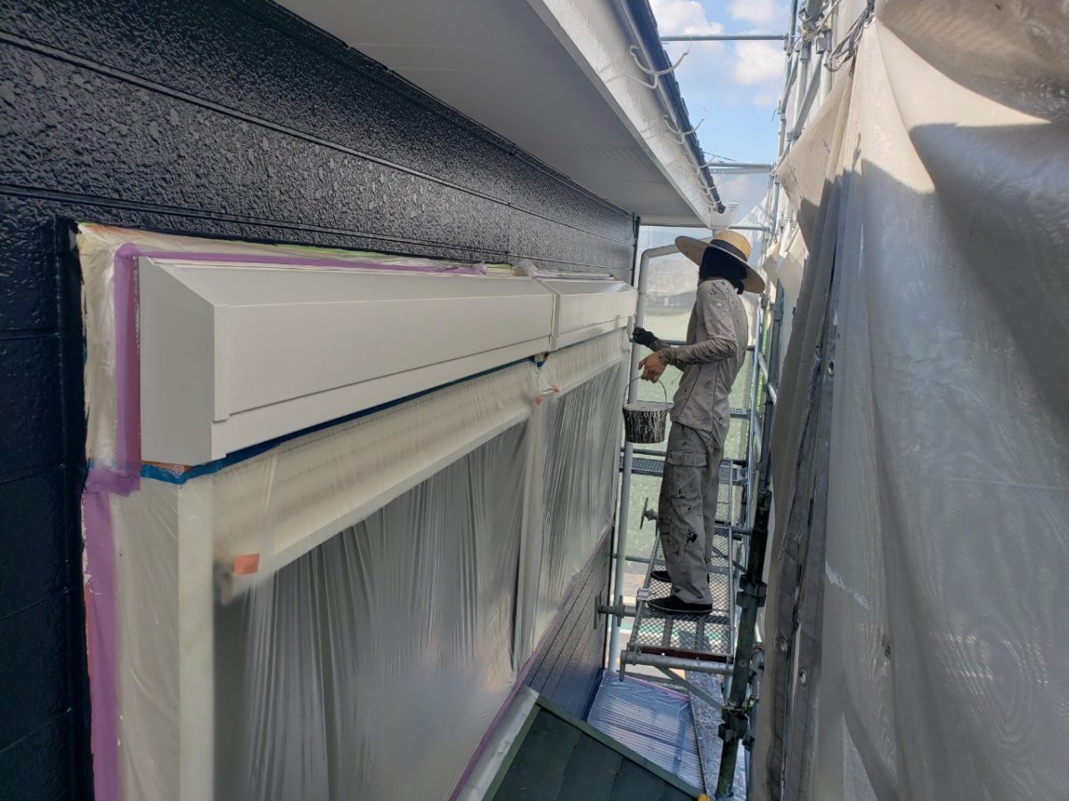 屋根、外壁以外の箇所を総称して附帯物と言いますが、附帯物の下塗りが一通り終わったところで本日は終わりです。