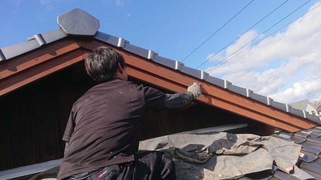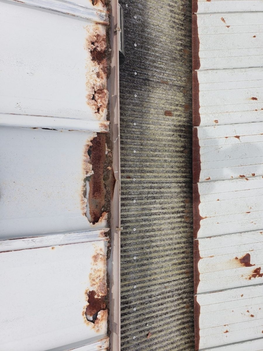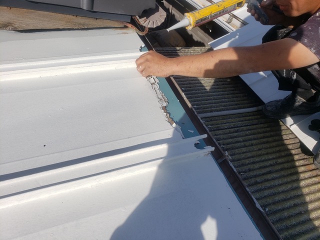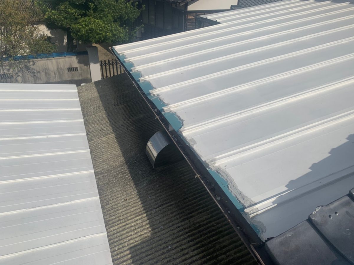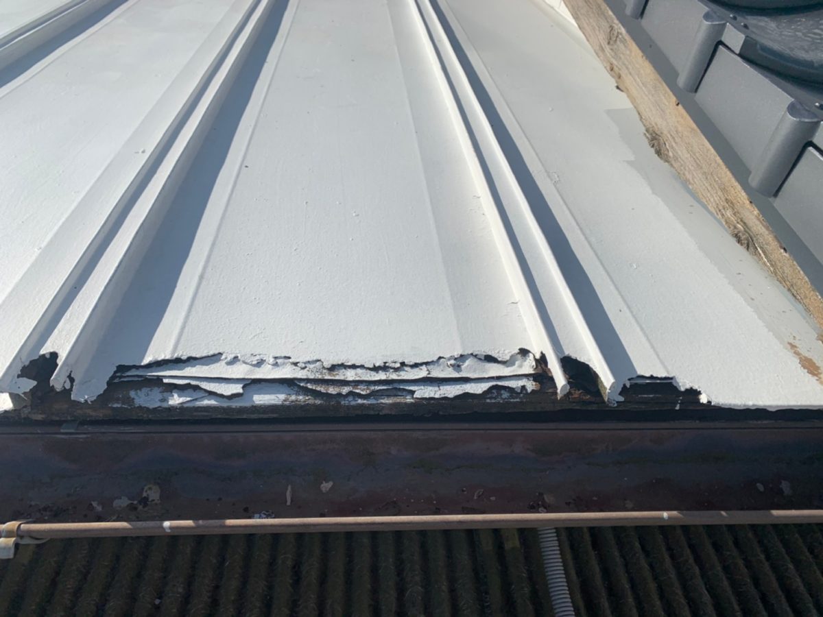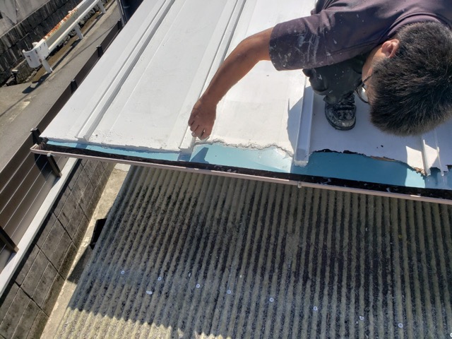 同時並行でトタン屋根の鼻先の腐食部を撤去して新しくトタンを被せて修繕作業。