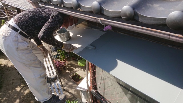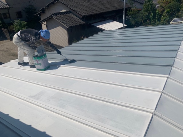 まずはトタン屋根の中塗り状況