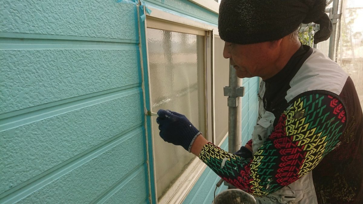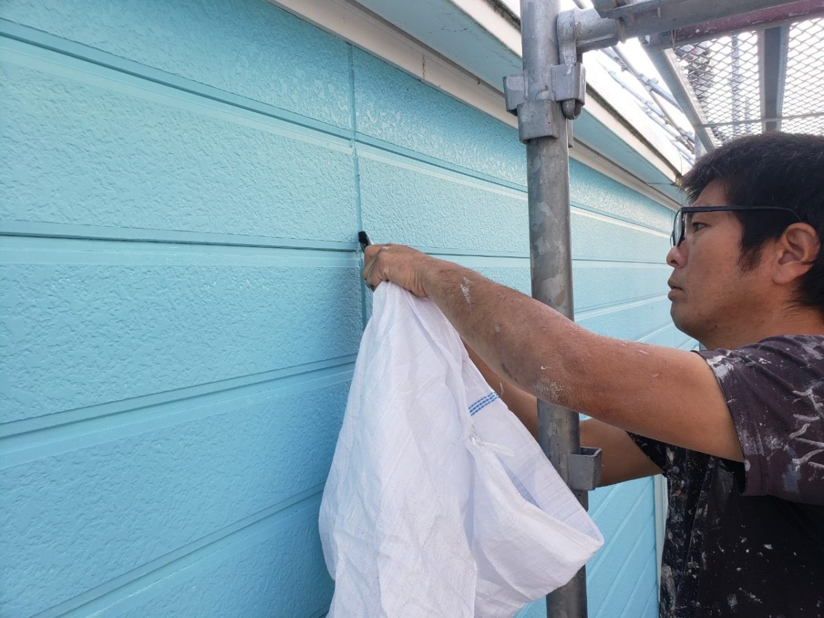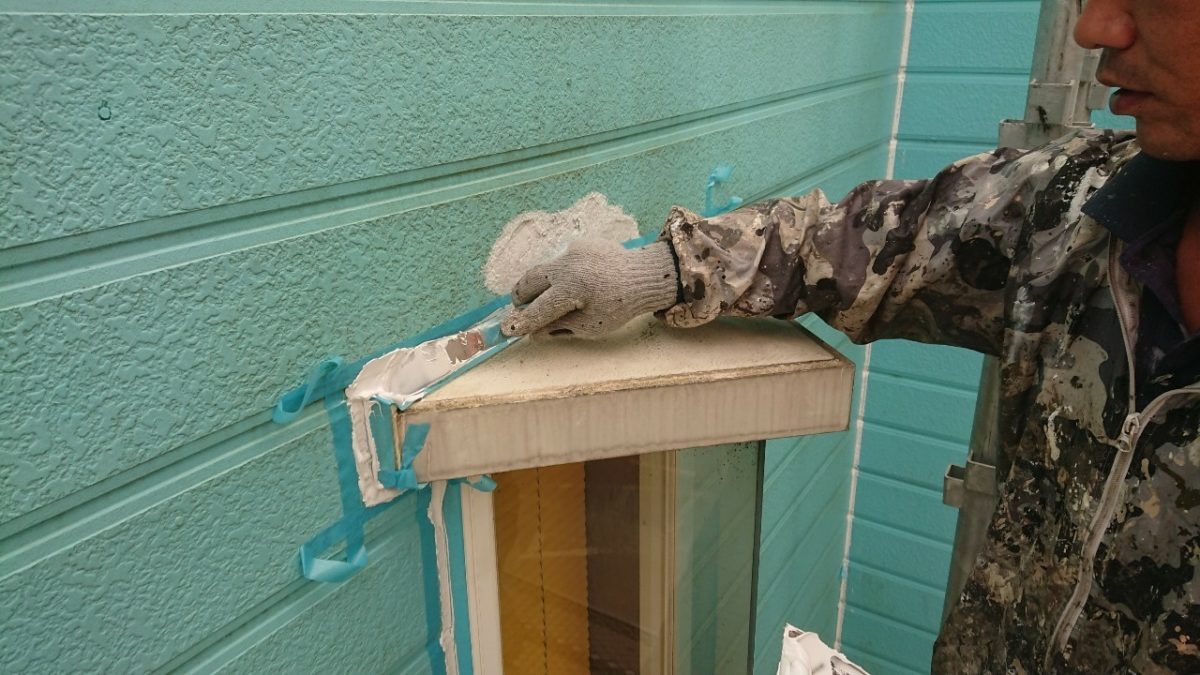 ↑ プライマー塗りが終わったらシーリングの打設です。