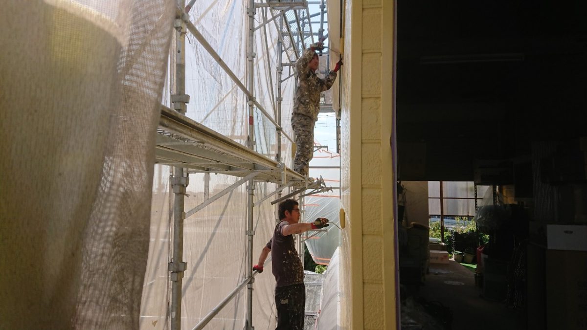 同時に外壁1階の上塗りです。