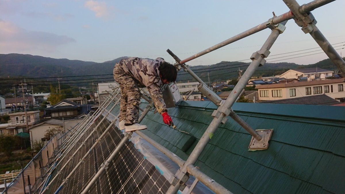 続きまして屋根の上塗りです。