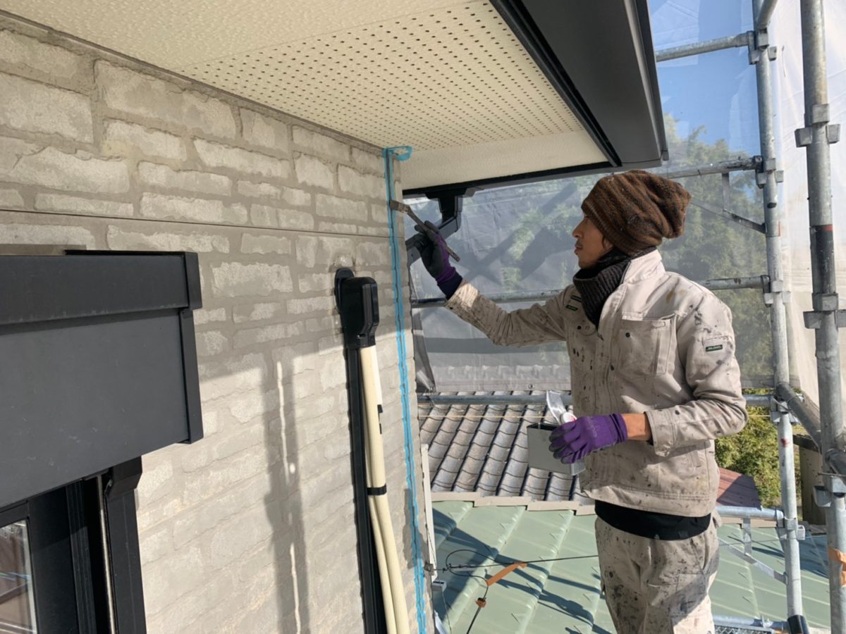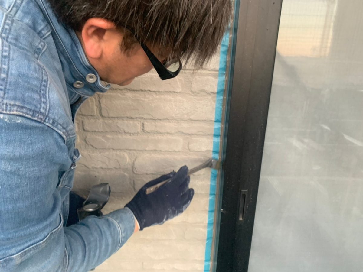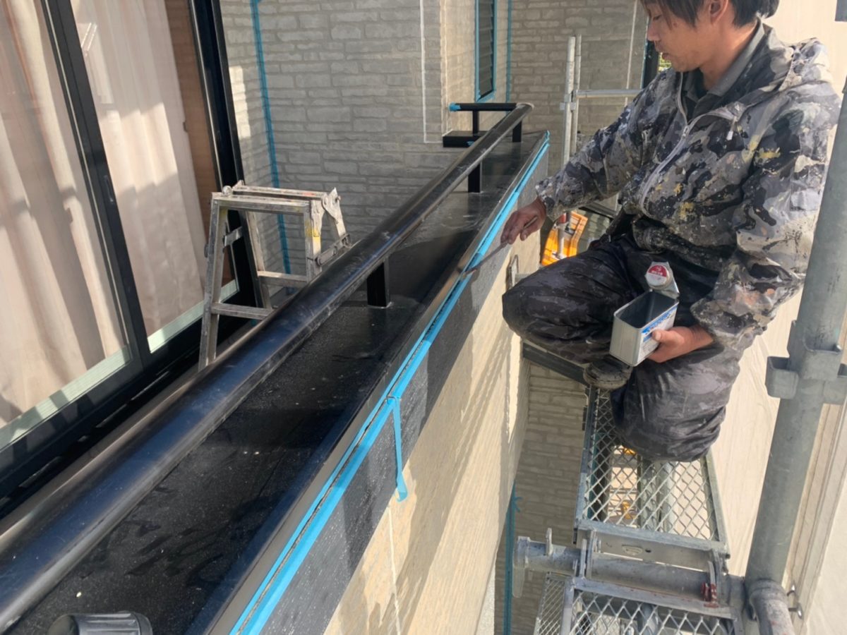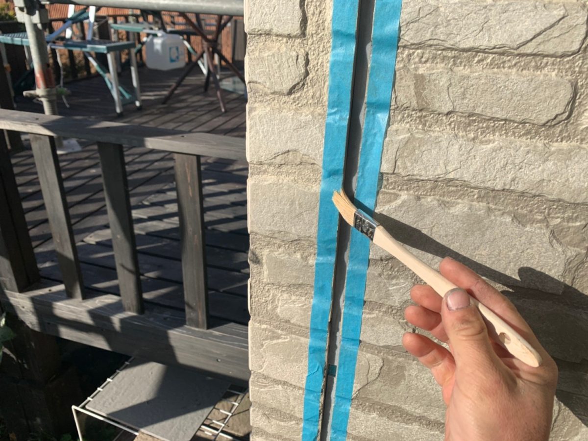 まずはシーリング箇所テープを貼った後のプライマー塗布状況です。