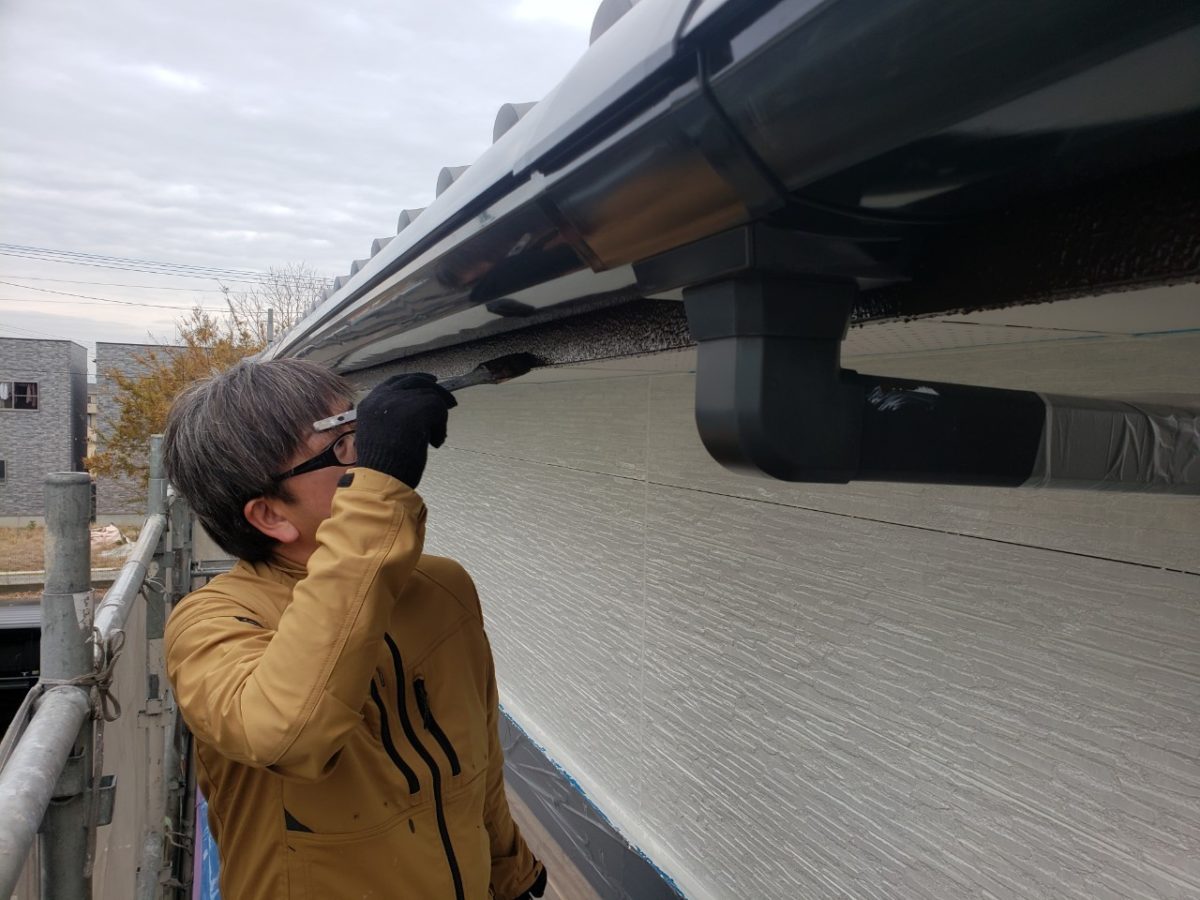 日当たりの良い箇所は特にですが浸透型薄塗り形下塗り材を塗布していきます。