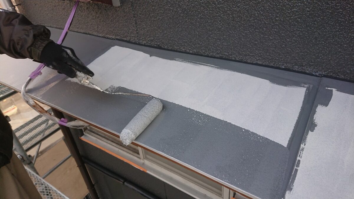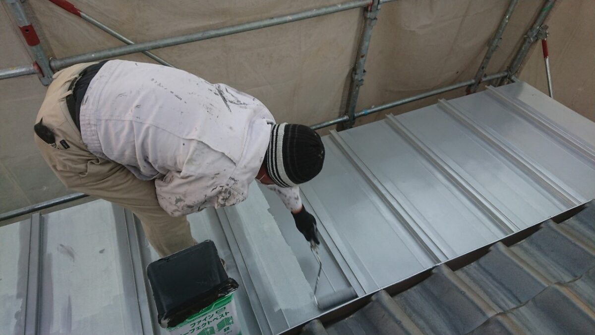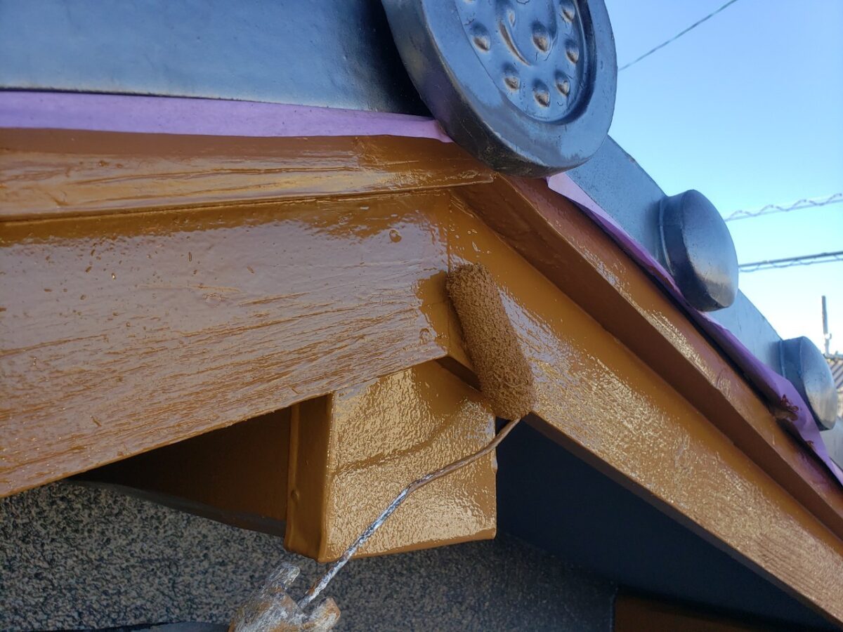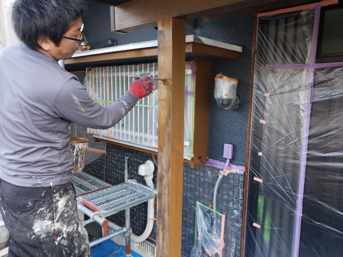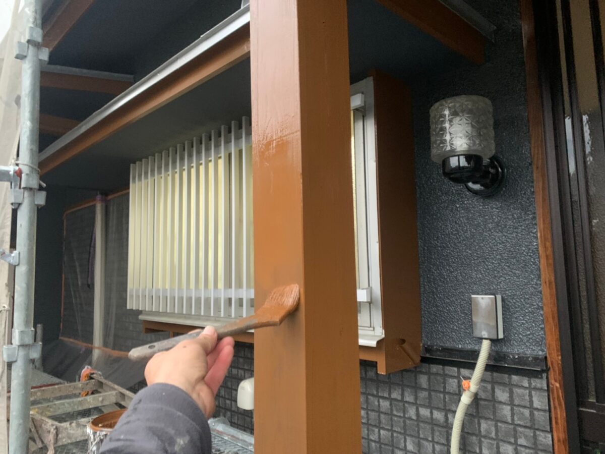 本日最後に縦樋の中塗りを塗って終わりとします。
