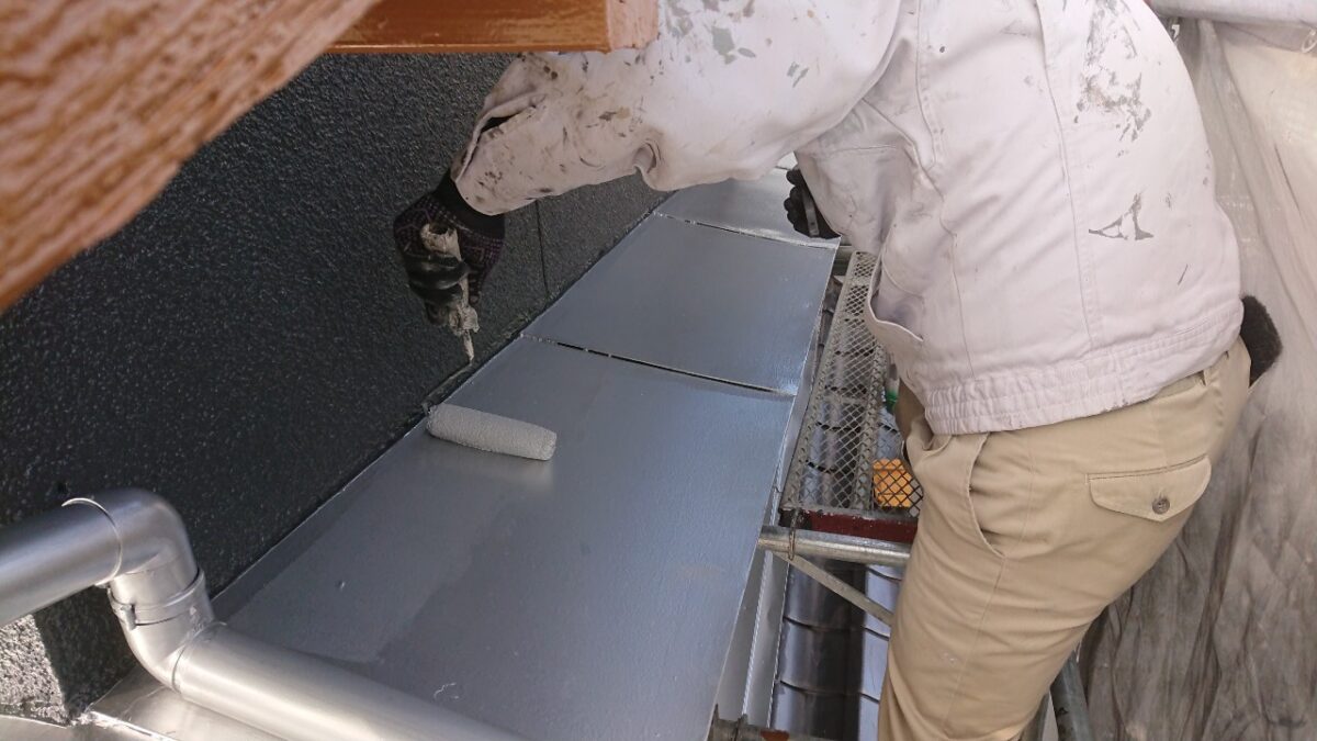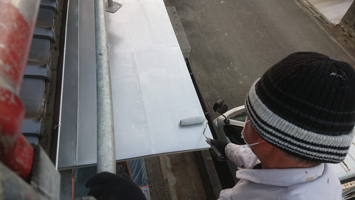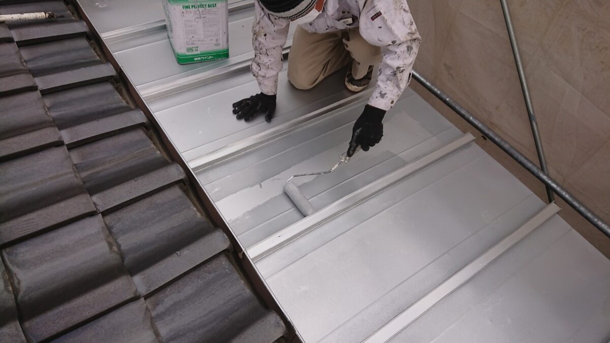 まずはトタン屋根の上塗り状況です。