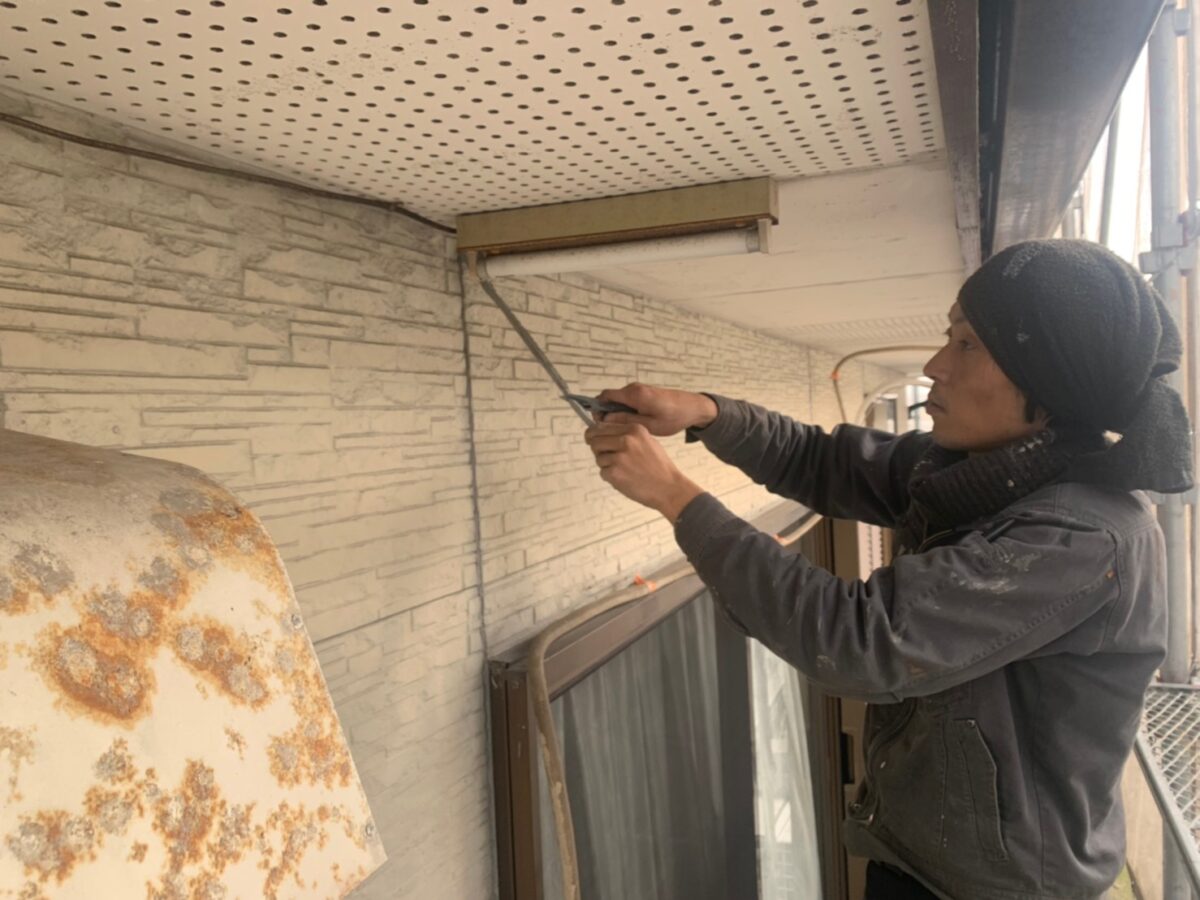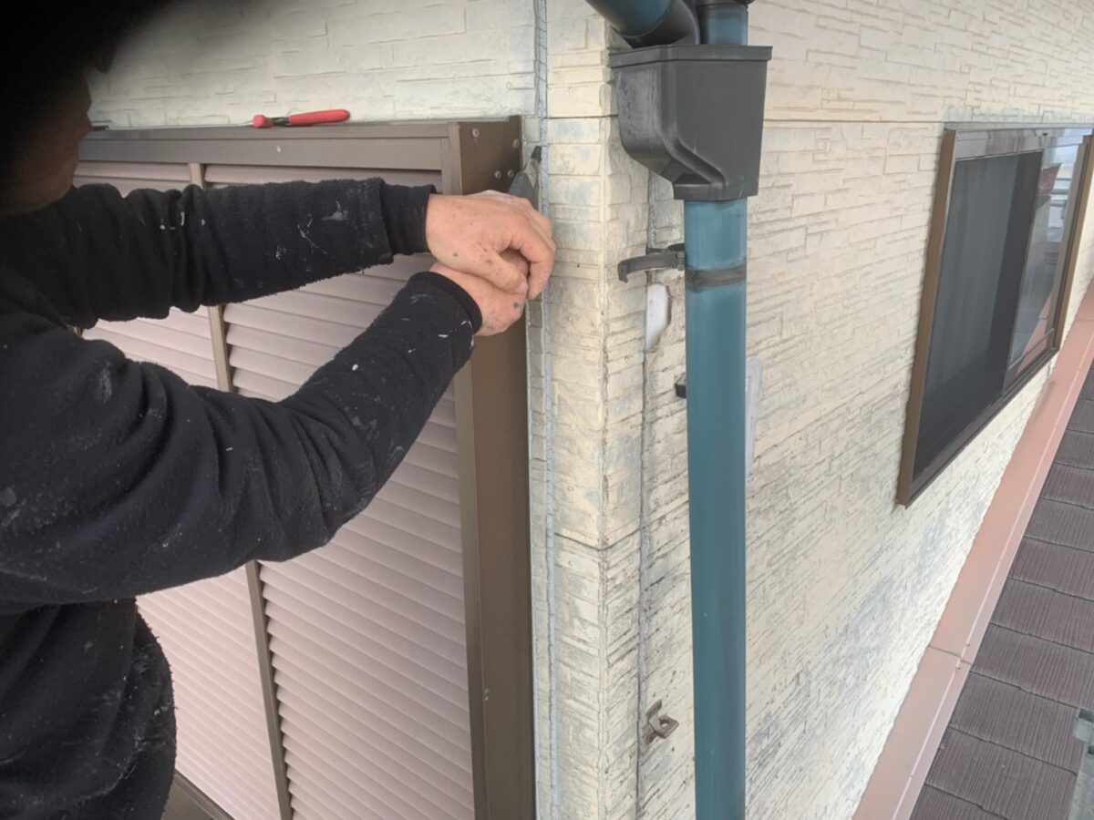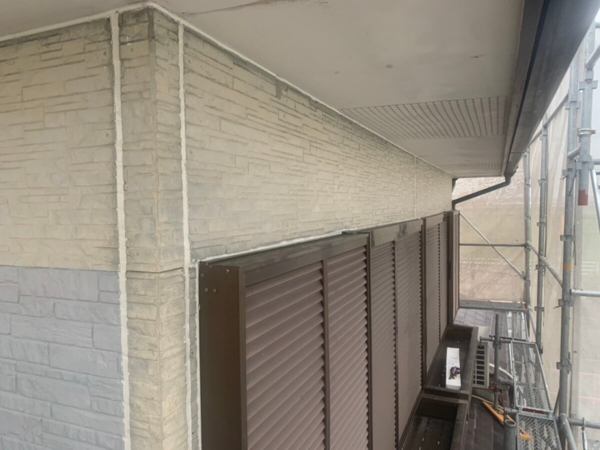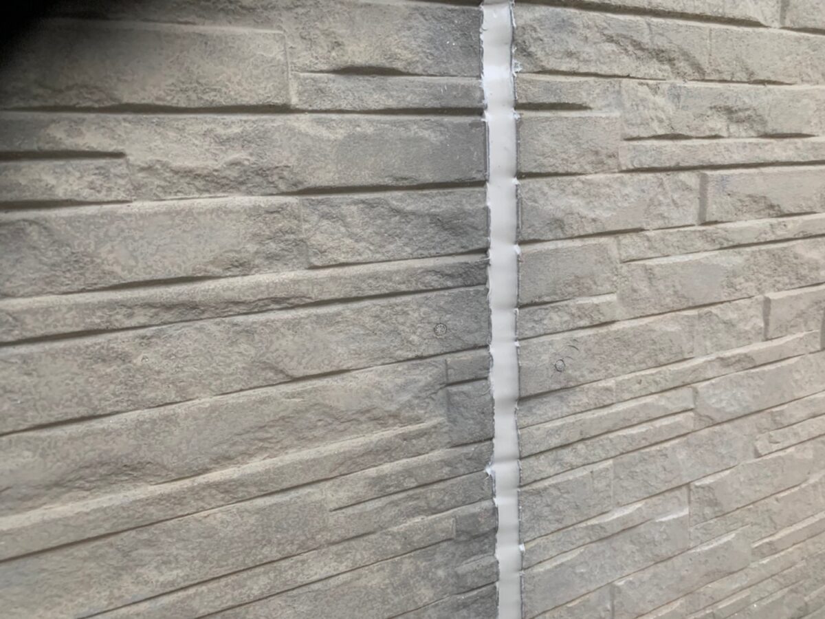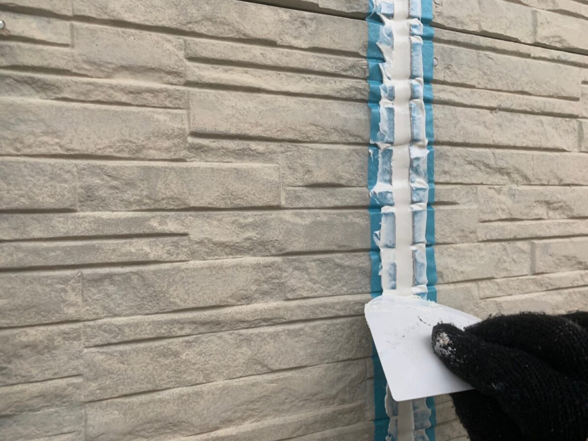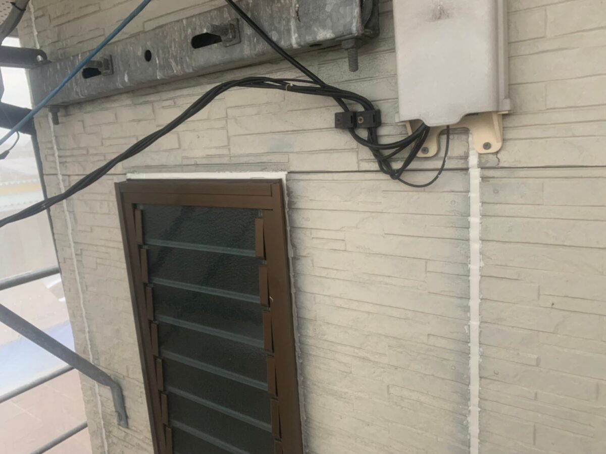 まずは例によって外壁の損傷が激しいため高圧洗浄前に水漏れ防止でシーリング工事を施します。