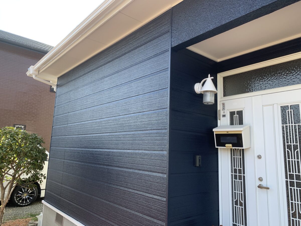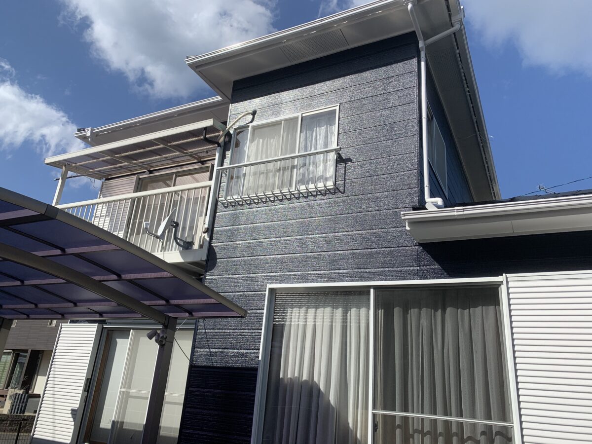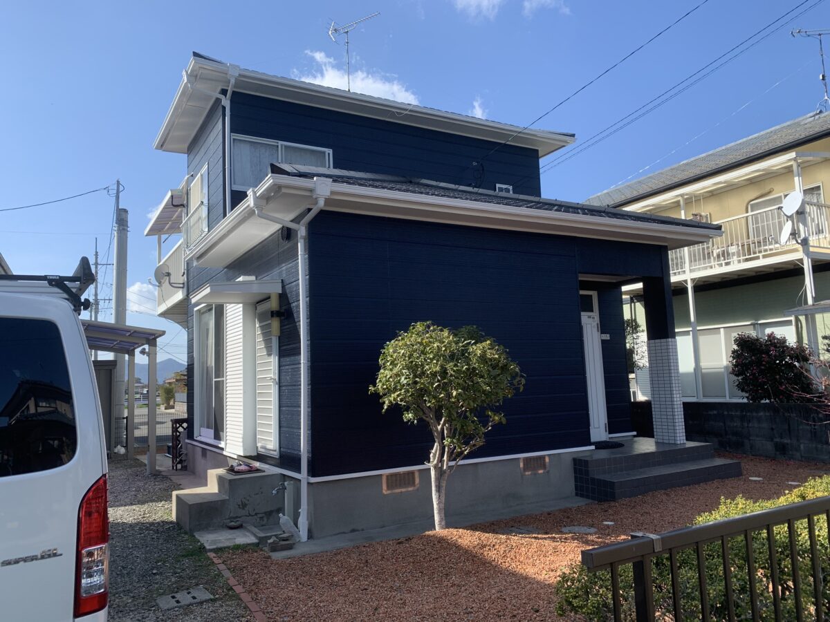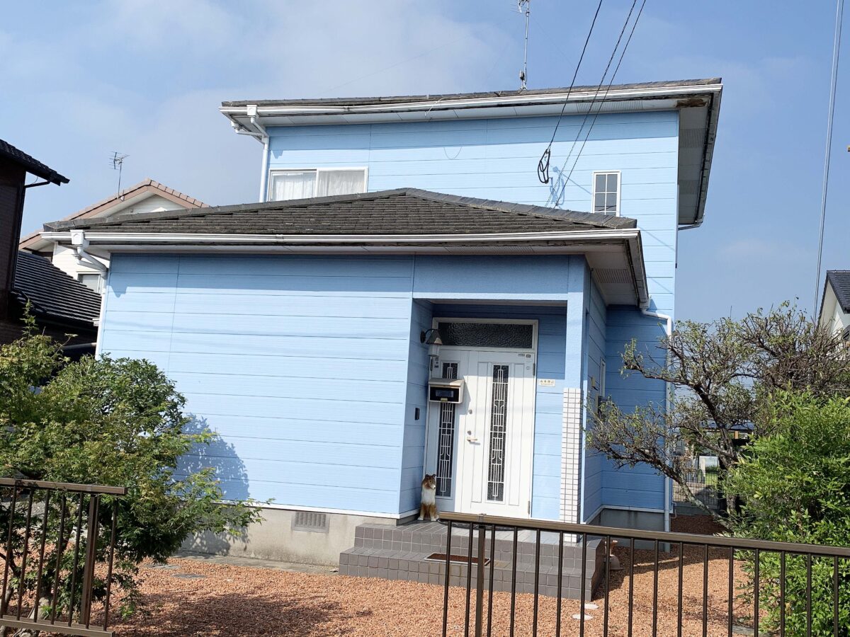 以前の塗り替え時に外壁色を濃い青色に指定していたにも関わらず水色にされて、凄い不満を持ってられてて今回ようやく思い通りの色になって大満足という評価を頂きました(^^)