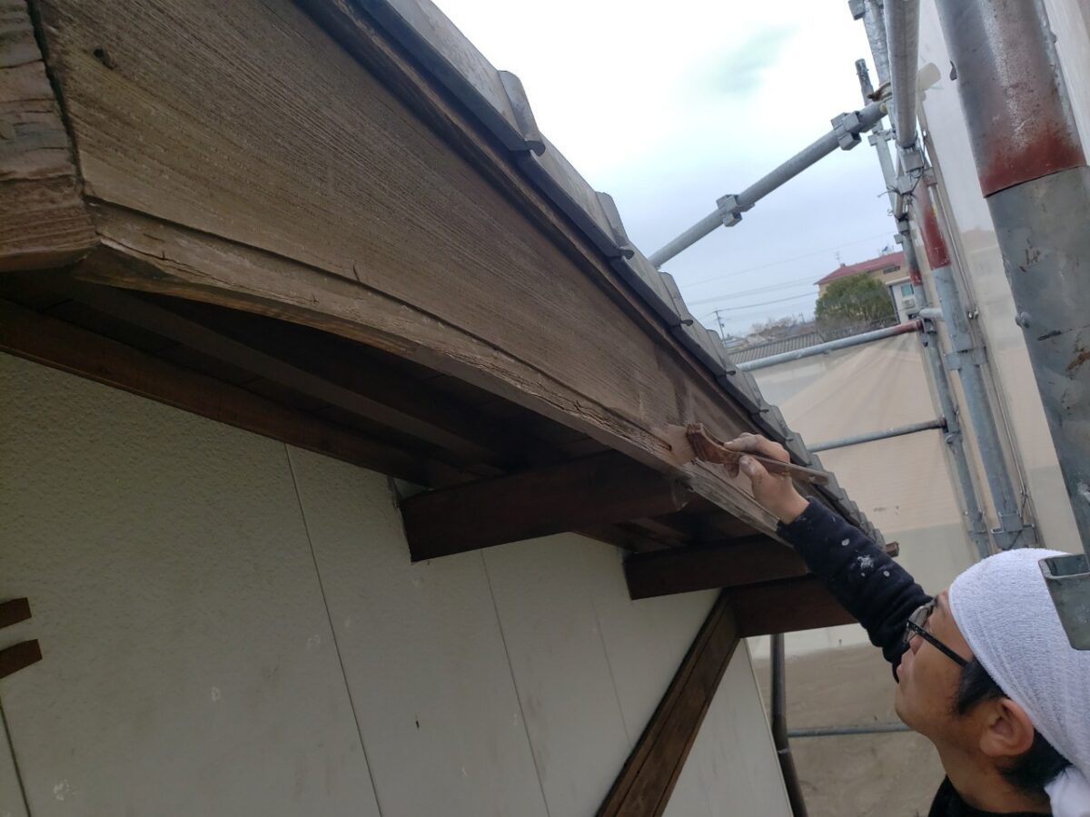 次に、前回研磨した木部の下塗り状況です。
