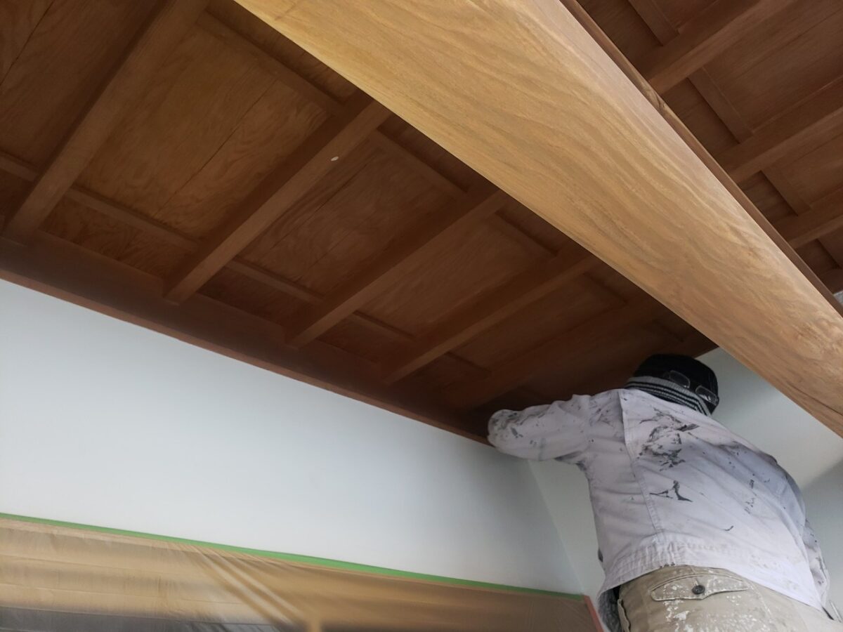 翌々日、木部の上塗り状況です。