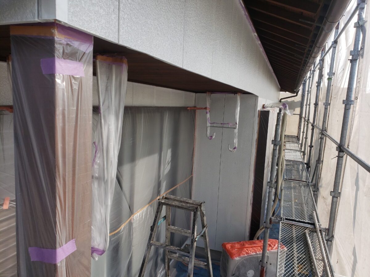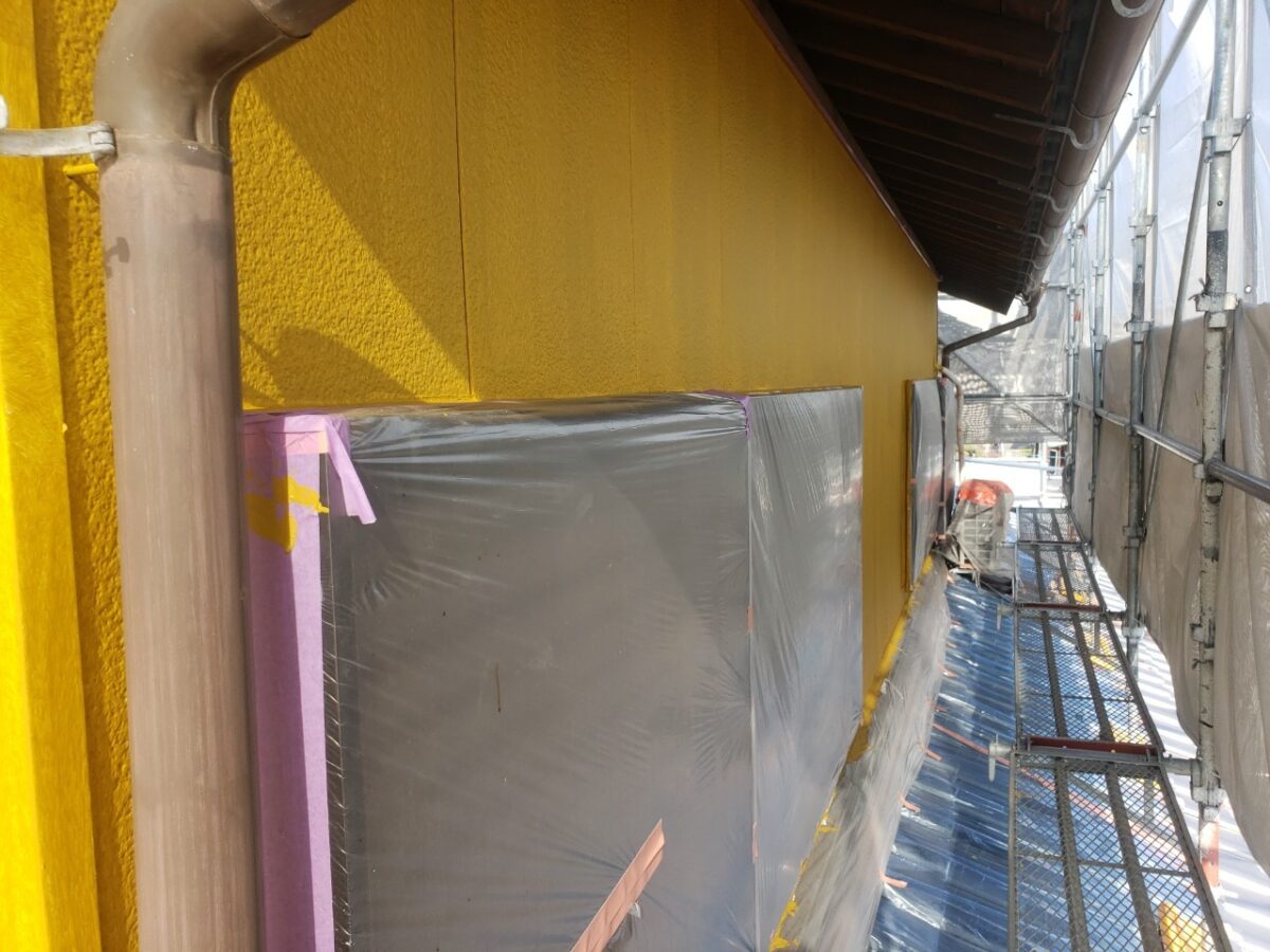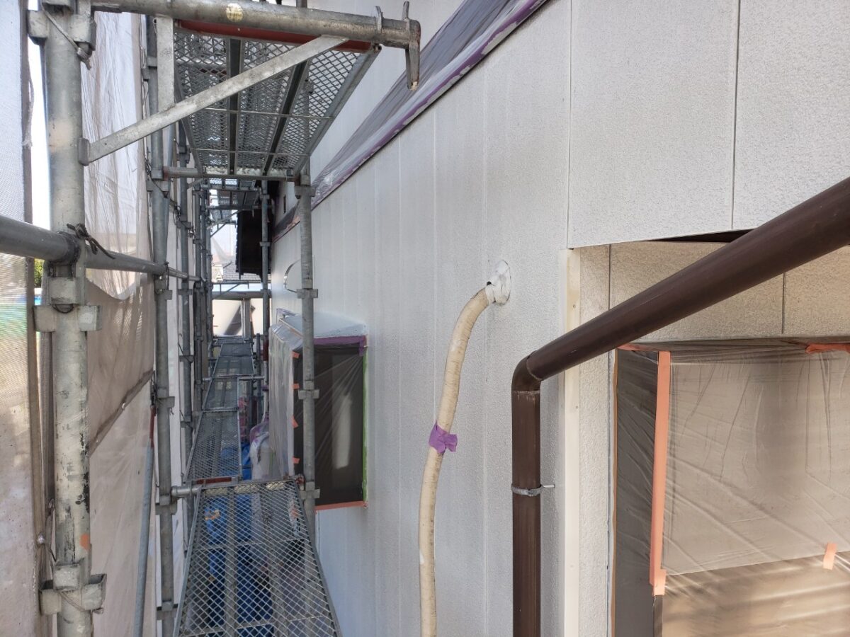 まずは養生後、外壁下塗り状況です。