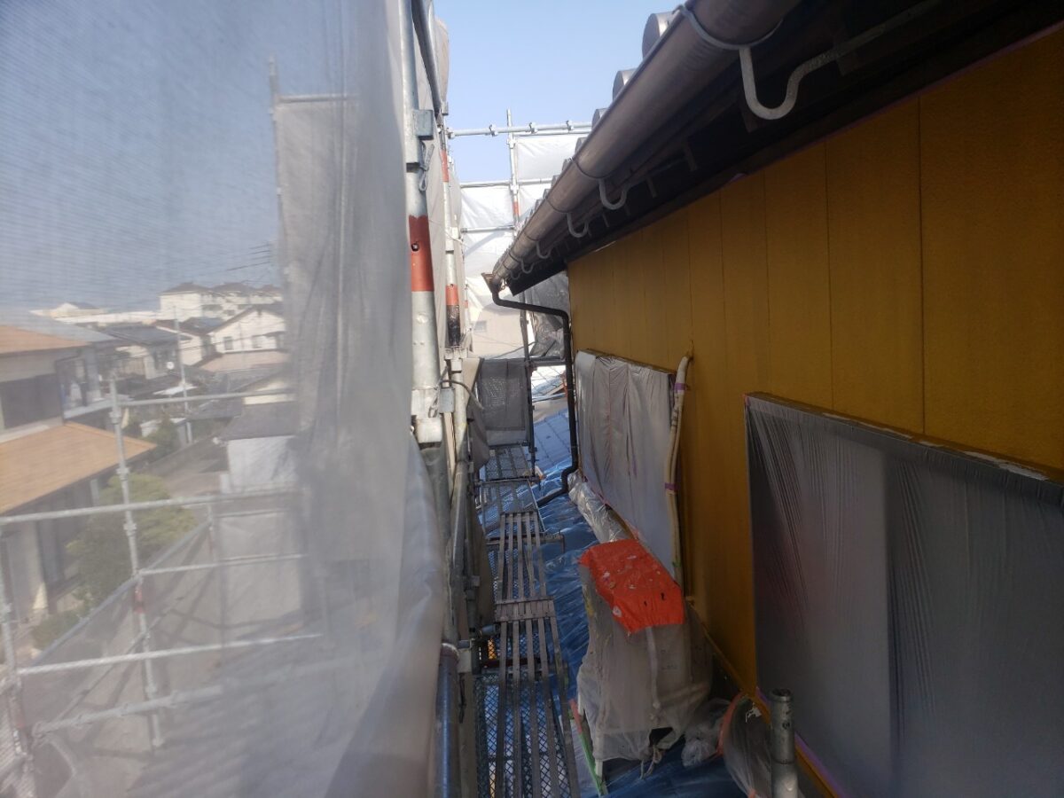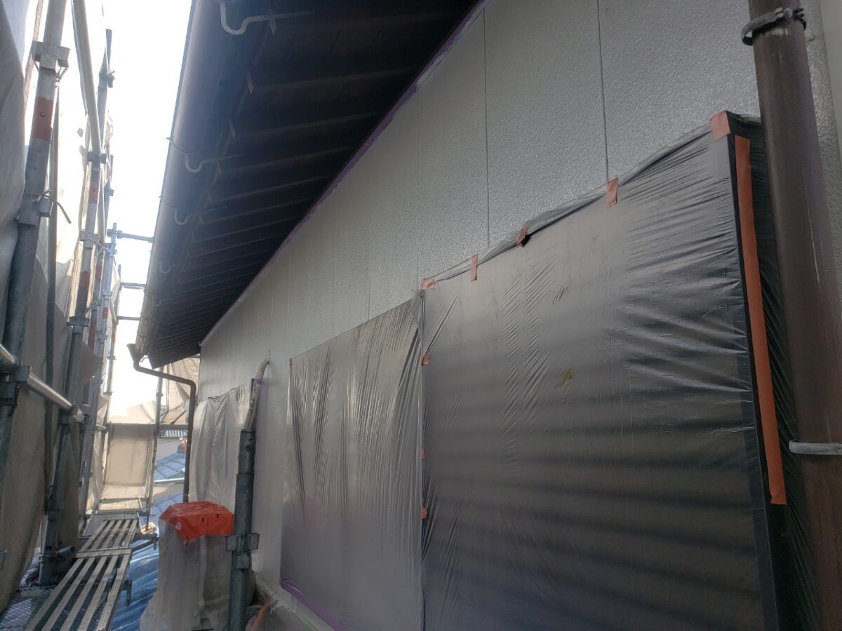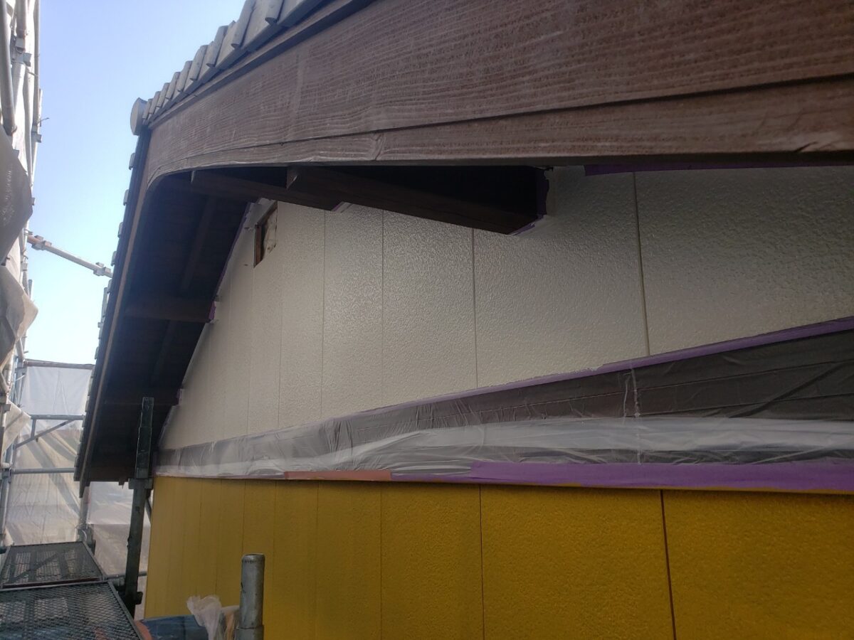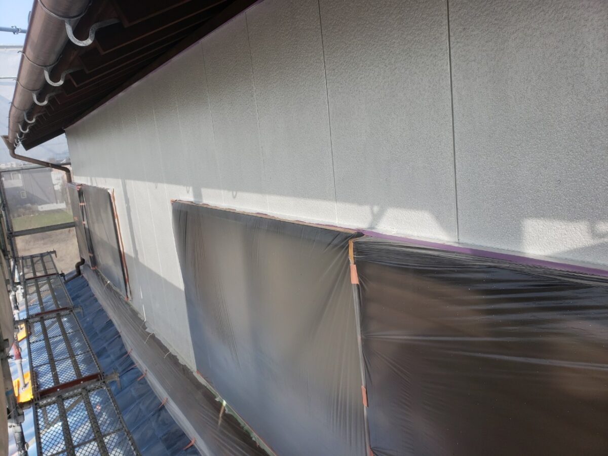 まずは養生後、外壁下塗り状況です。