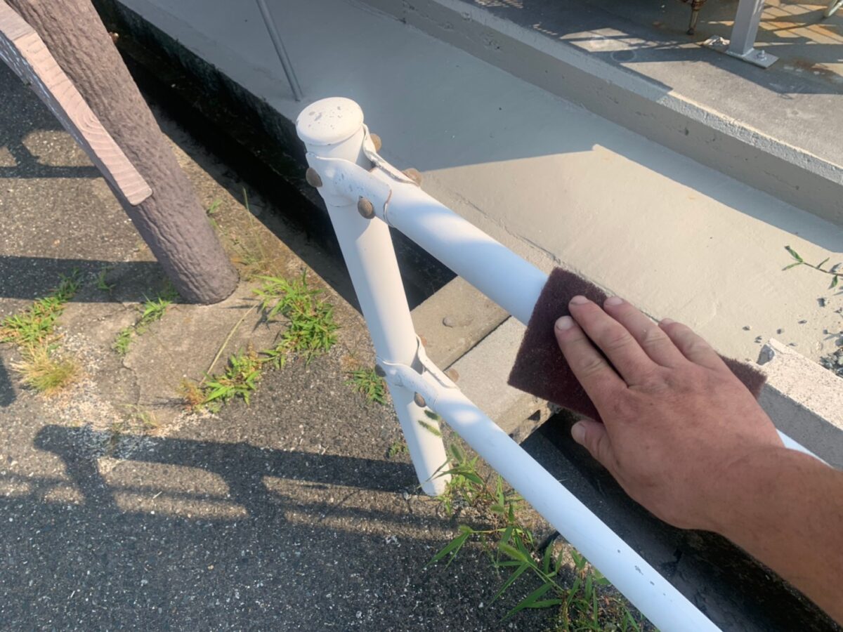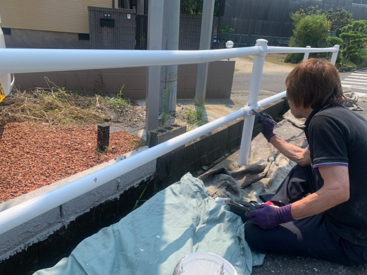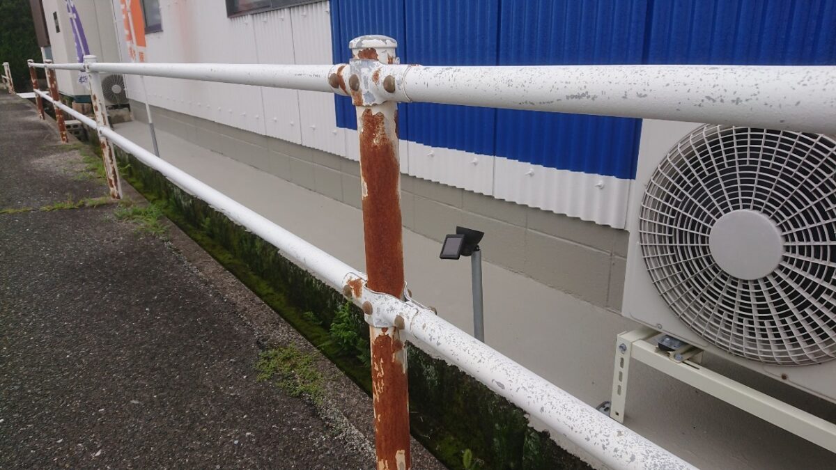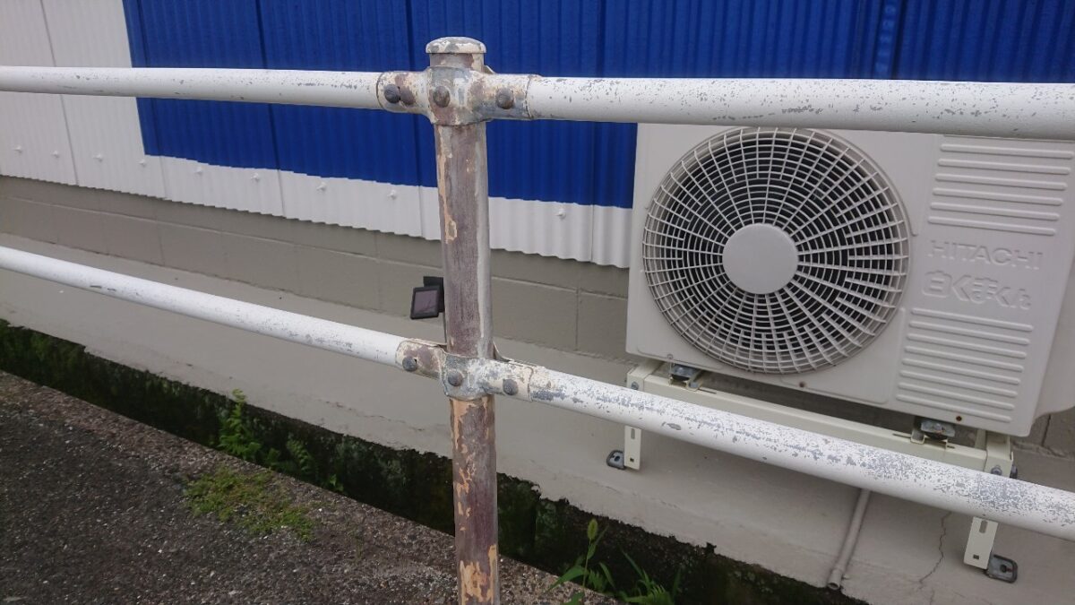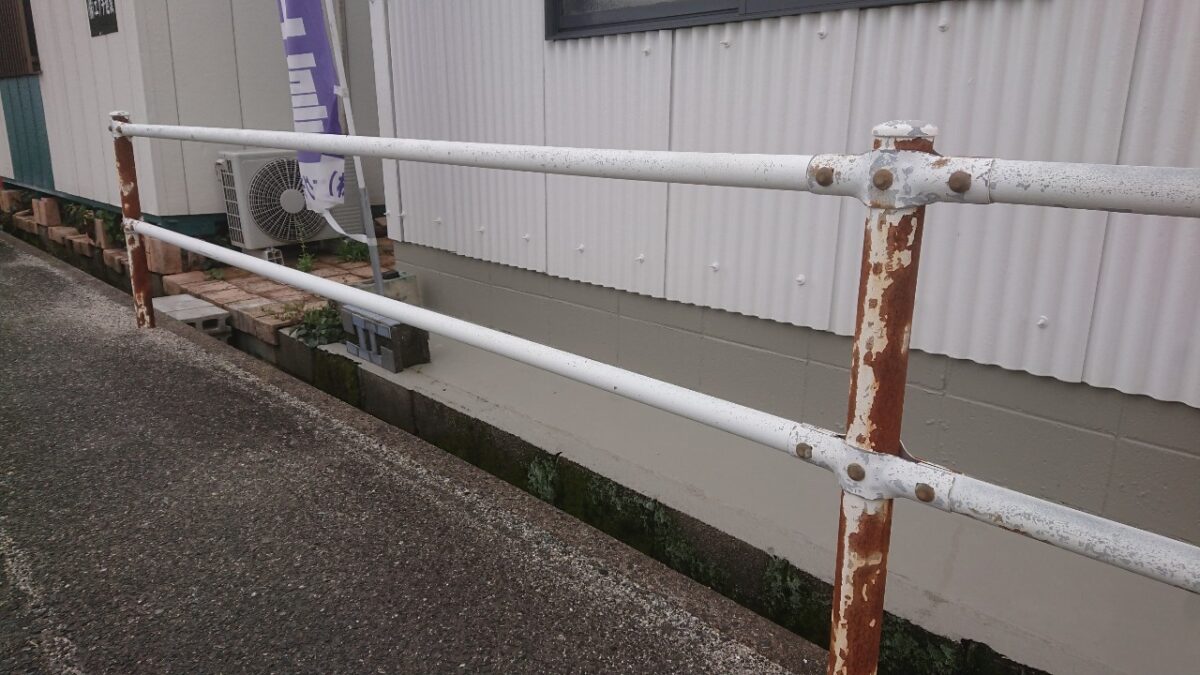 梅雨入りして何件かのお客様から工事の延期を申し込まれて、梅雨の期間は何しようかと考えた時、ちょうど弊社の目の前のガードパイプが錆がしてたのを思い出しました。