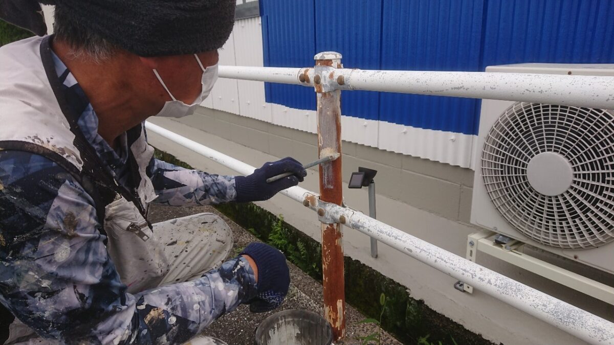 その後、乾燥させたら下塗りの錆止めを塗っていきます。