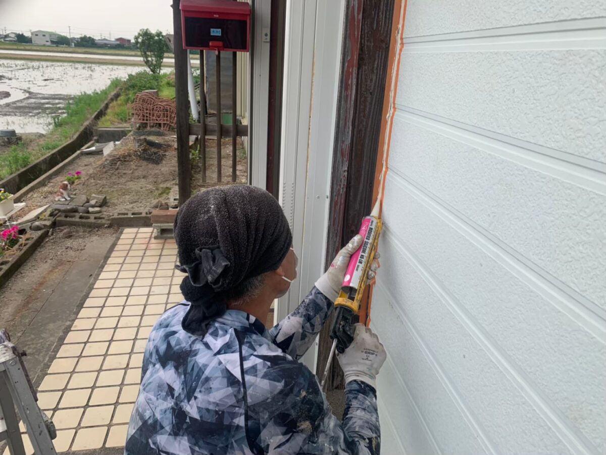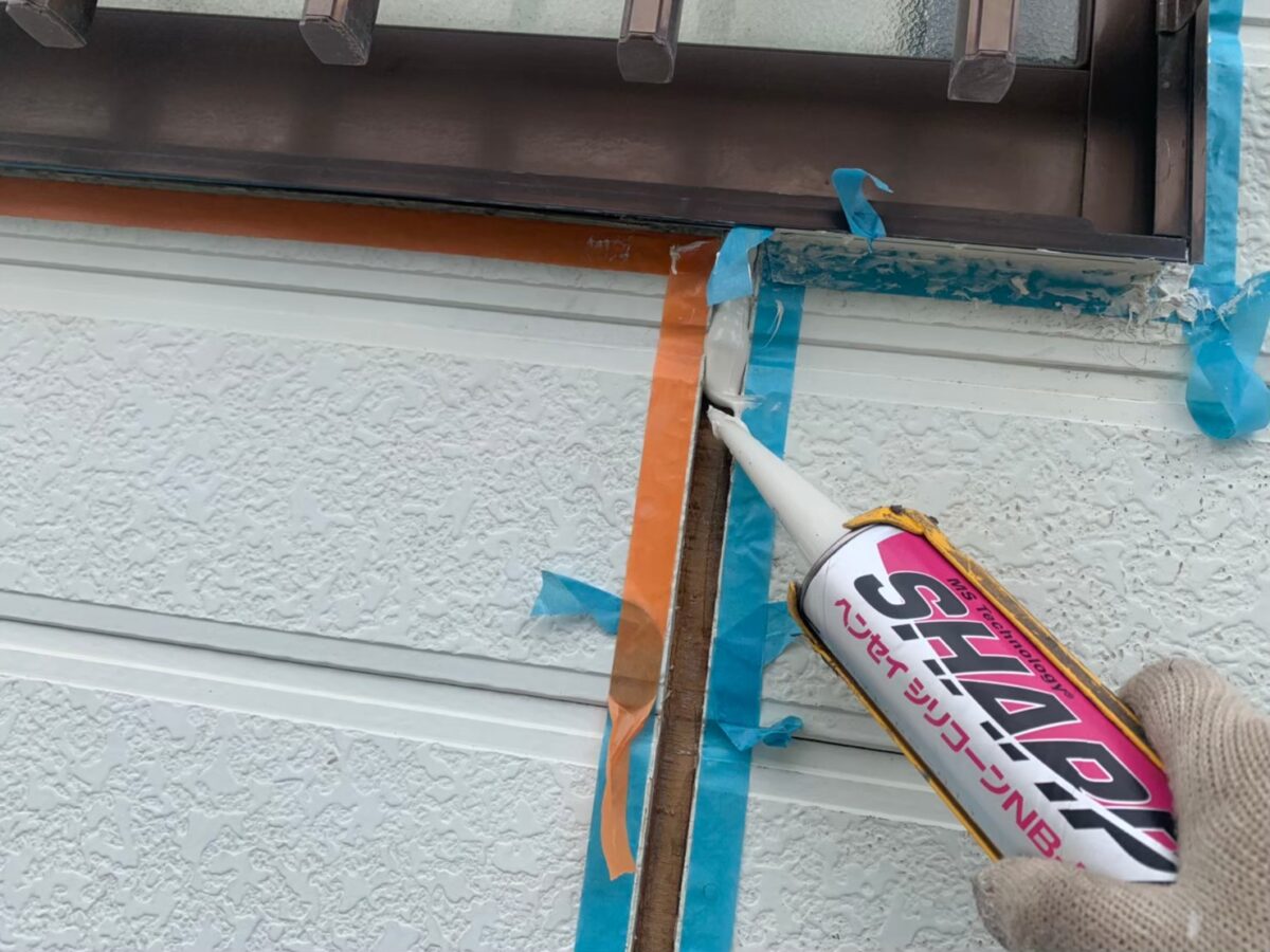 まずは乾燥時間を必要とするサイディングのシーリング工事から始めます。