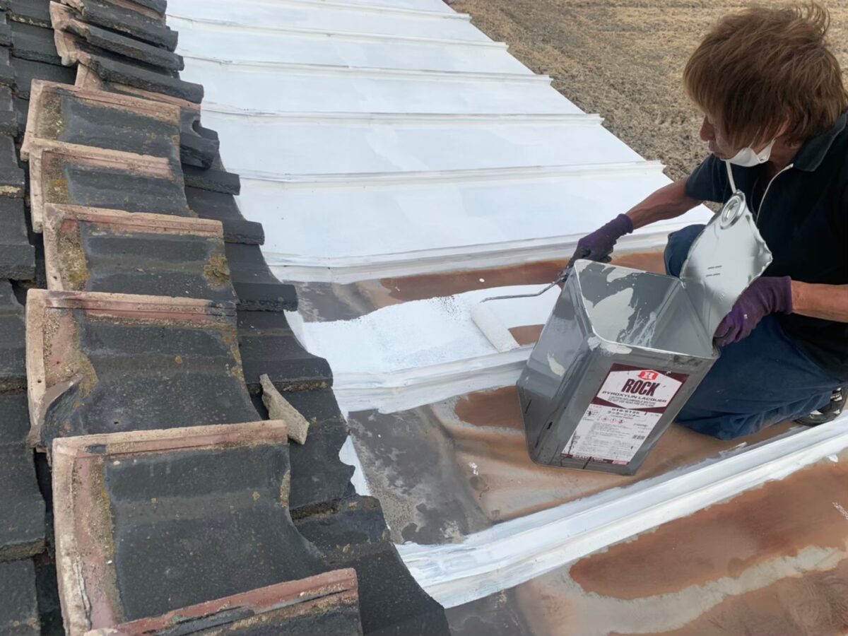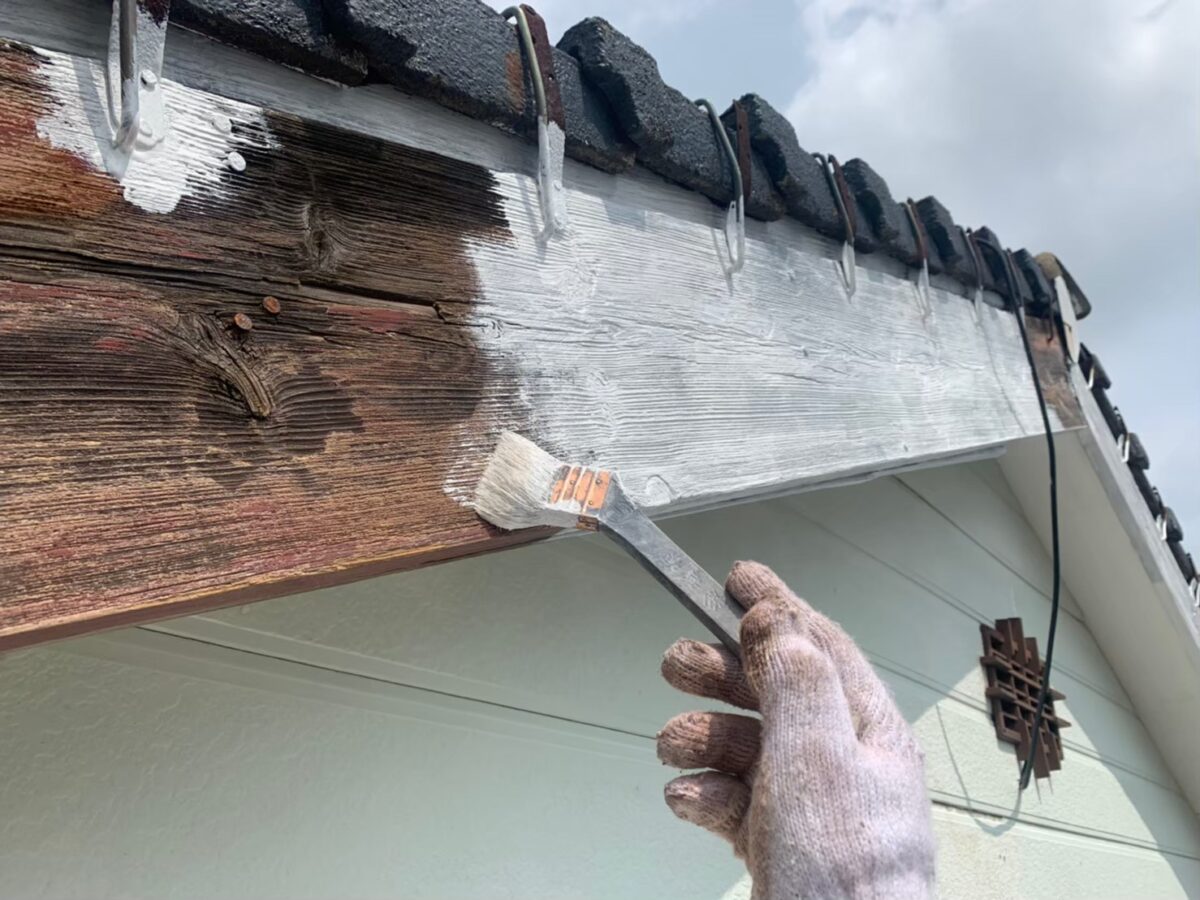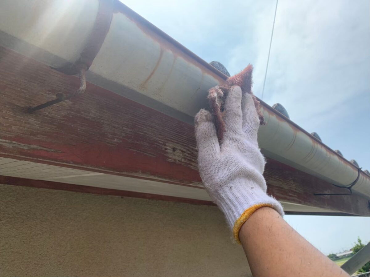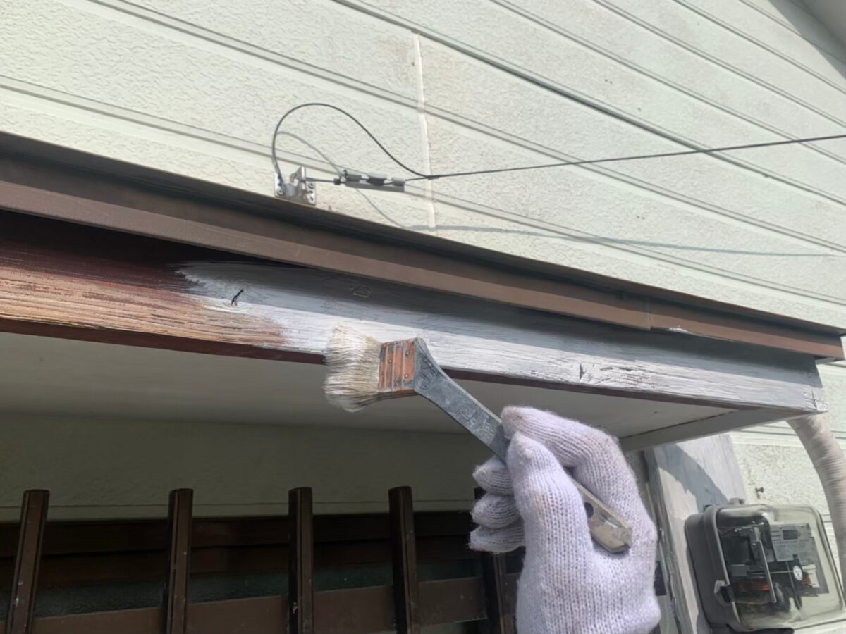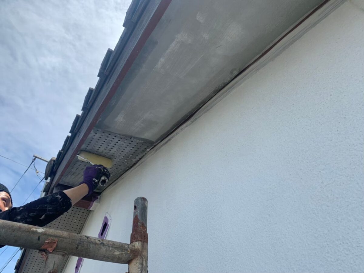 シーリングが終わる頃には別の職人が樋の下地処理を手掛けます。