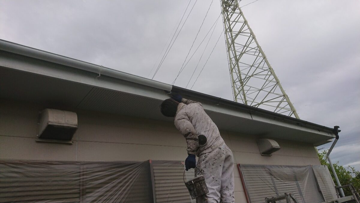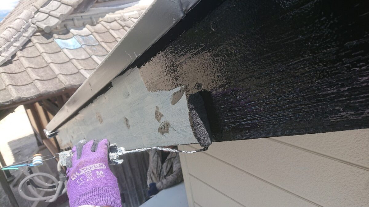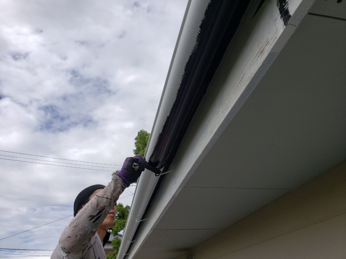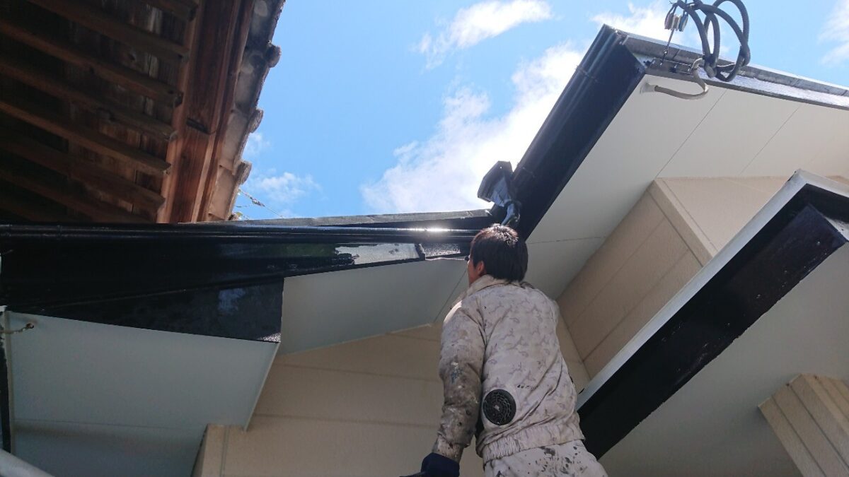 続きまして、破風や樋等の附帯部中塗り状況です。